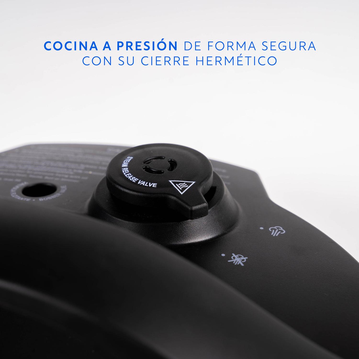 O simplemente selecciona Presión Manual para establecer los ajustes de cocción de tu preferencia. Y gracias a su función Conservar Temperatura, tus preparaciones siempre estarán a la temperatura ideal para servir, sin enfriarse ni cocerse en exceso.