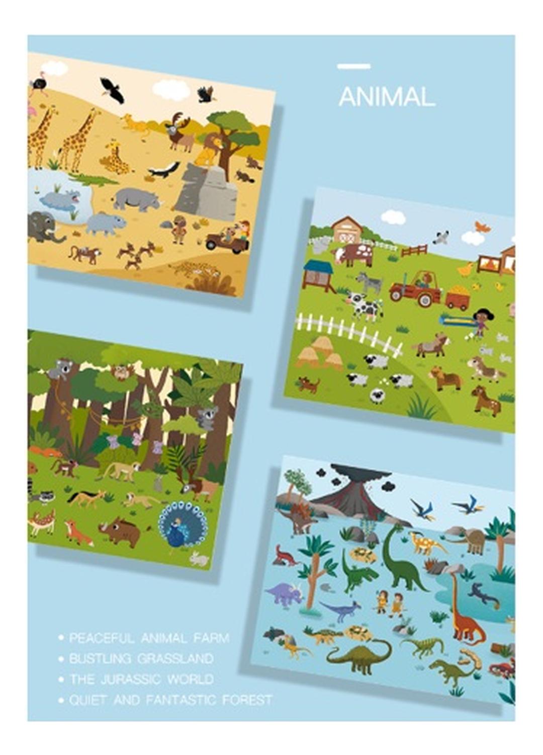 Set de stickers reutilizables, impermeables trae 4 diferentes escenas para jugar, pegar y despegar cuantas veces quieras, con fondo transparente para que se adapten a cualquier escena, 200pcs