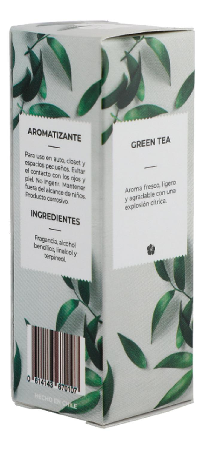 Lleva la tranquilidad y frescura del té verde a tu auto con el aromatizador Green Tea. Este elegante envase de 8 ml libera una fragancia suave y revitalizante que evoca serenidad y bienestar, creando un ambiente relajante para cada trayecto.