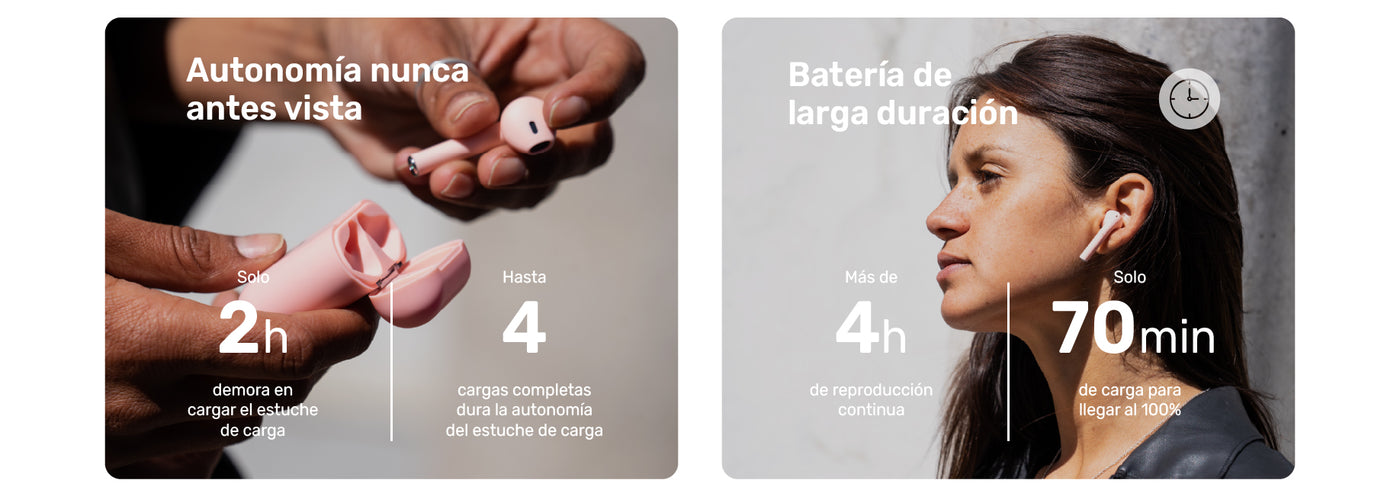 • Tiempo de reproducción de música 5 horas