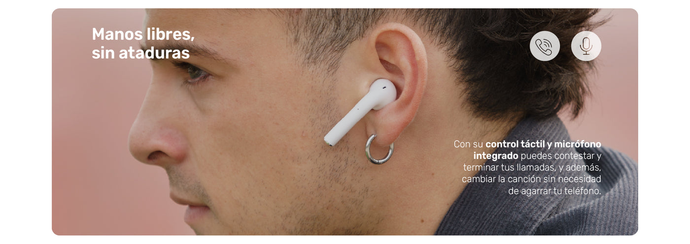 • Control táctil: reproduce música, contesta y termina tus llamadas.