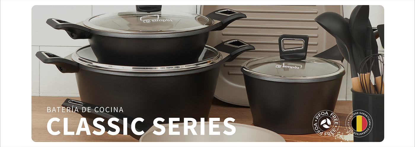 Nuestra Batería de Cocina Classic Series incluye ollas y sartenes de distintos tamaños y formas para brindarte un set completo con todo lo que necesitas.