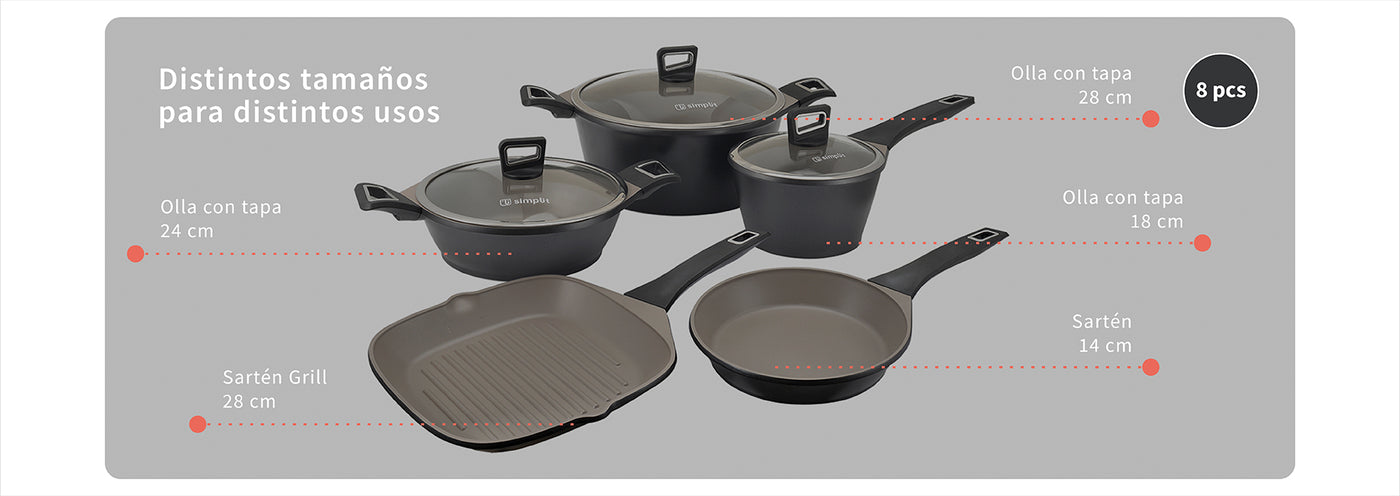 Batería de Cocina Antiadherente Classic 8 Piezas Simplit