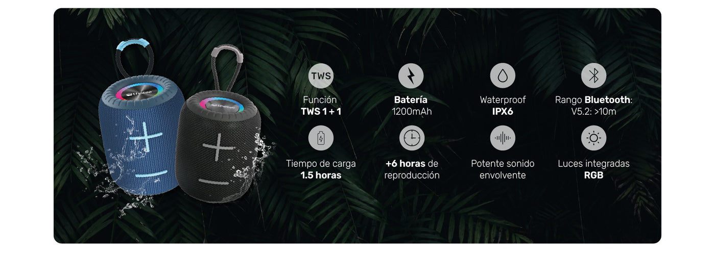 Su tamaño ligero y resistencia IPX6 al agua lo hacen ideal