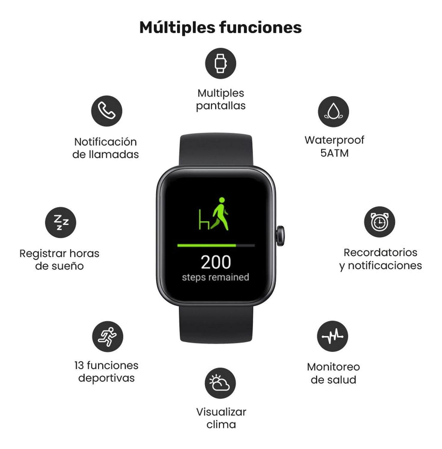 • 13 modos deportivos: trote interior y exterior, caminata interior y exterior, bicicleta interior y exterior, cricket, senderismo, natación, yoga, remadora, elíptica, fitness.