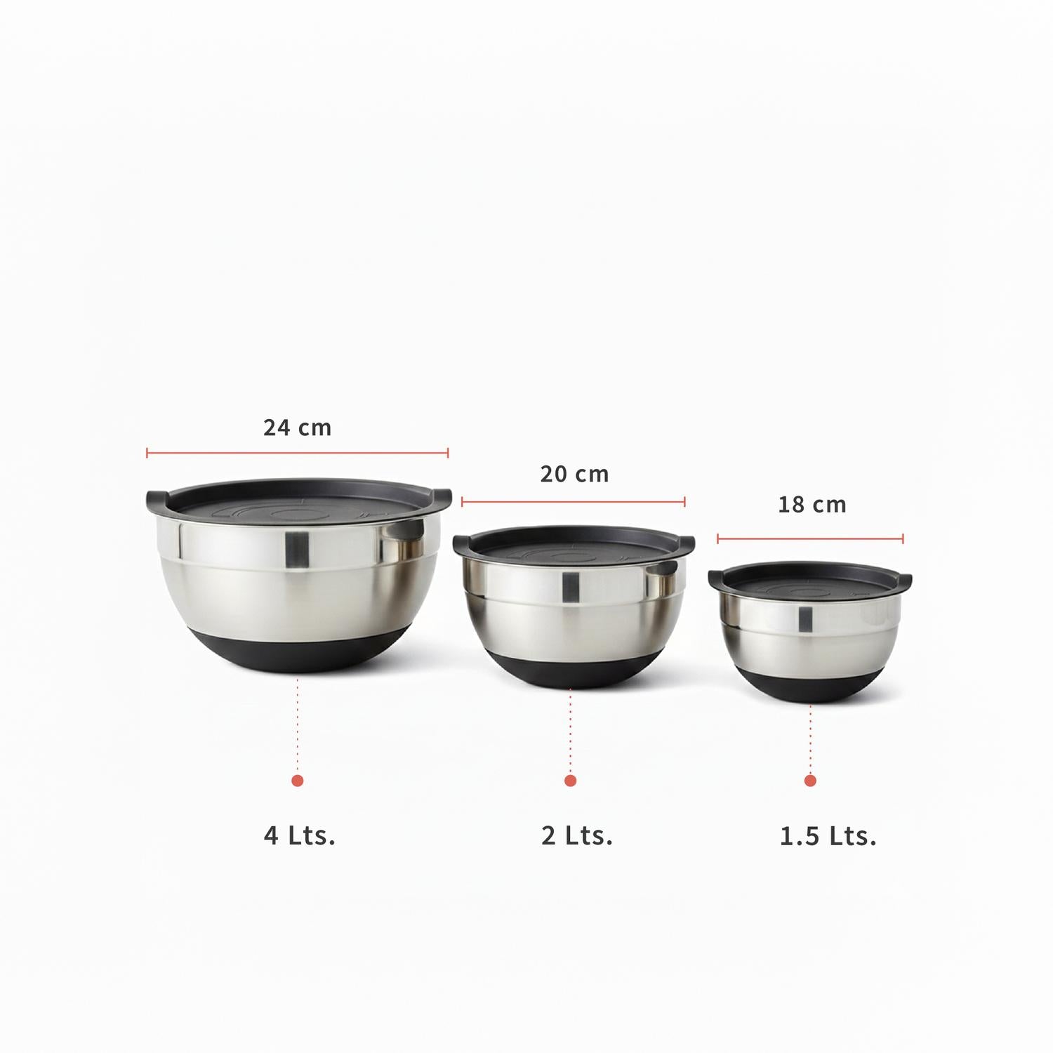 Set 3 Bowls con Tapa Acero Inoxidable Antideslizante Simplit
