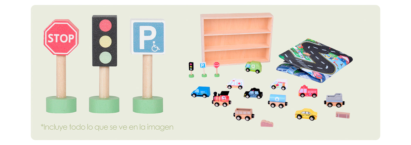 tránsito y transporte. Con piezas móviles, señaléticas y una pista para armar,