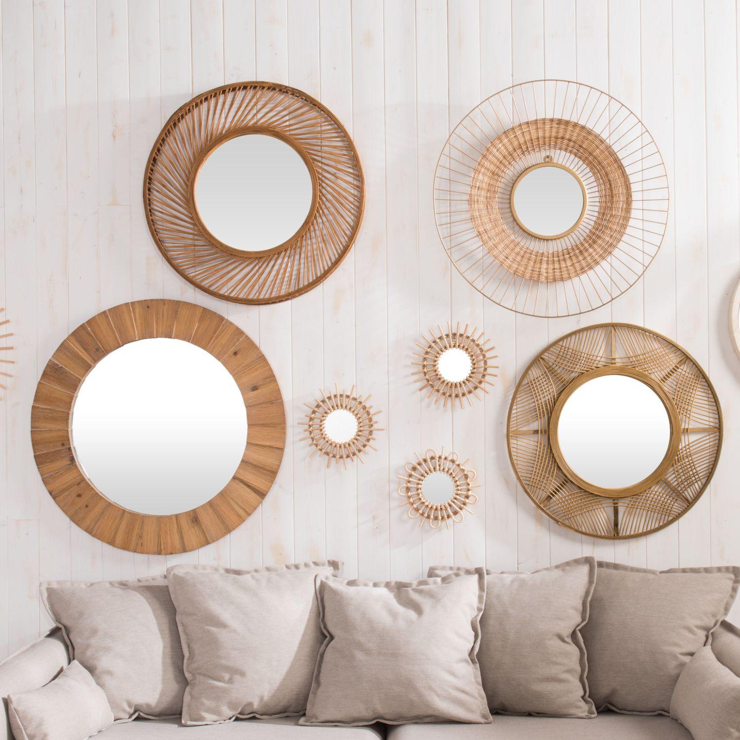 Espejo Redondo Olav 52 cm Marco de Madera Beige Atmosphera