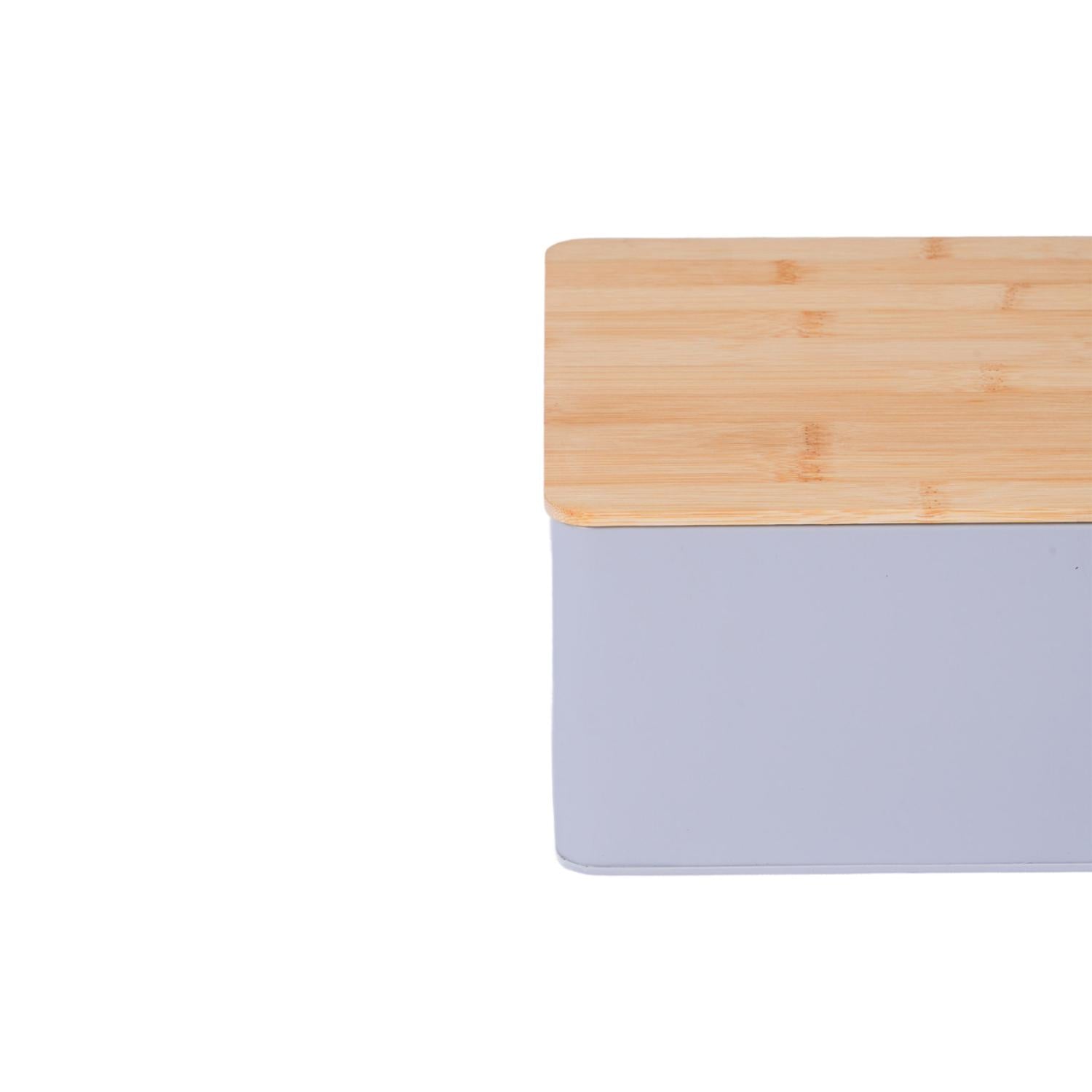 Panera Metal Gris Claro Con Tapa De Madera 30x22 cm DAY