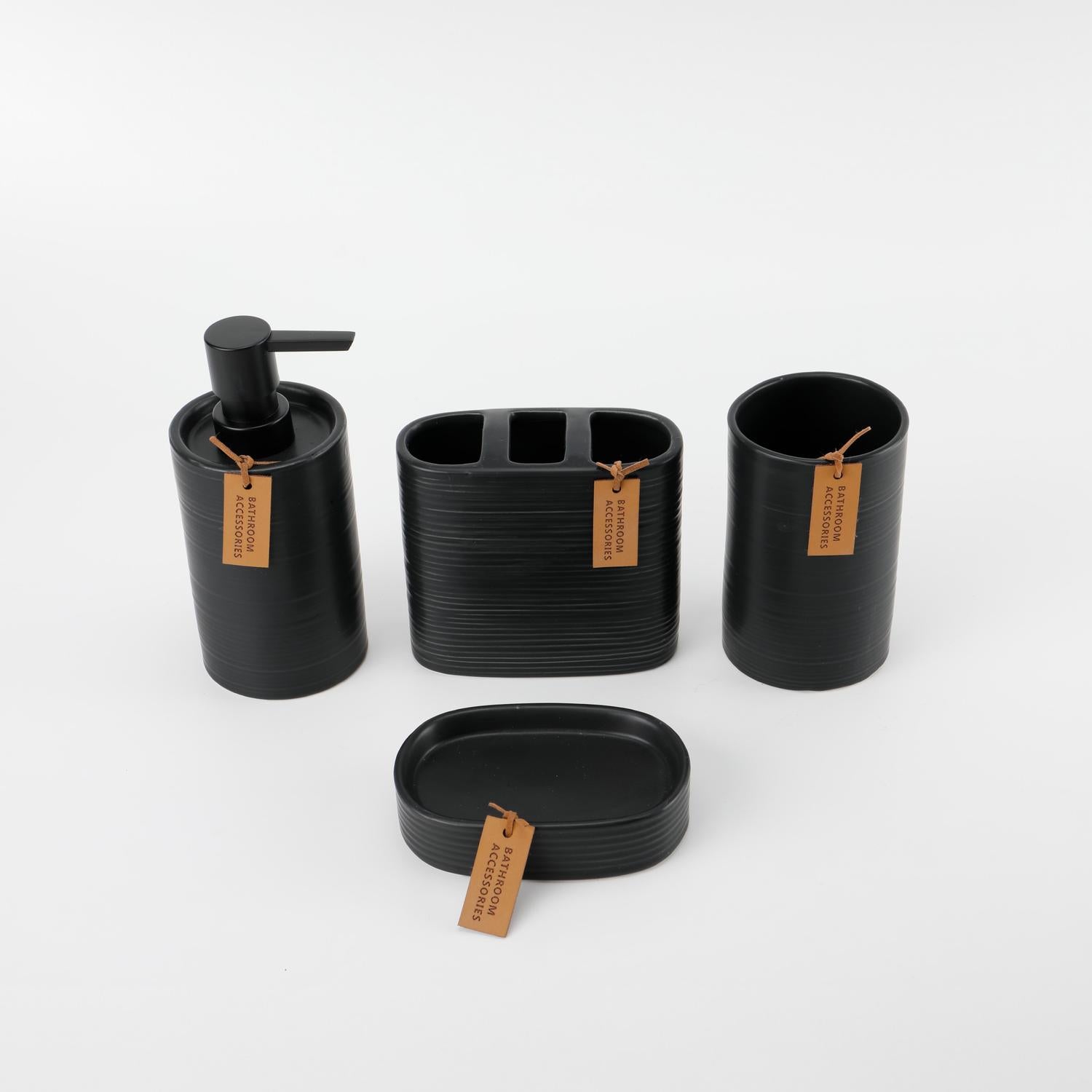 El set incluye 1 dispensador de jabón líquido, 1 vaso, 1 vaso para cepillos y 1 jabonera, proporcionando todo lo necesario para mantener tu baño organizado y con estilo. Su acabado en cerámica aporta una sensación de lujo, convirtiendo este set en un detalle imprescindible para un baño moderno y funcional.