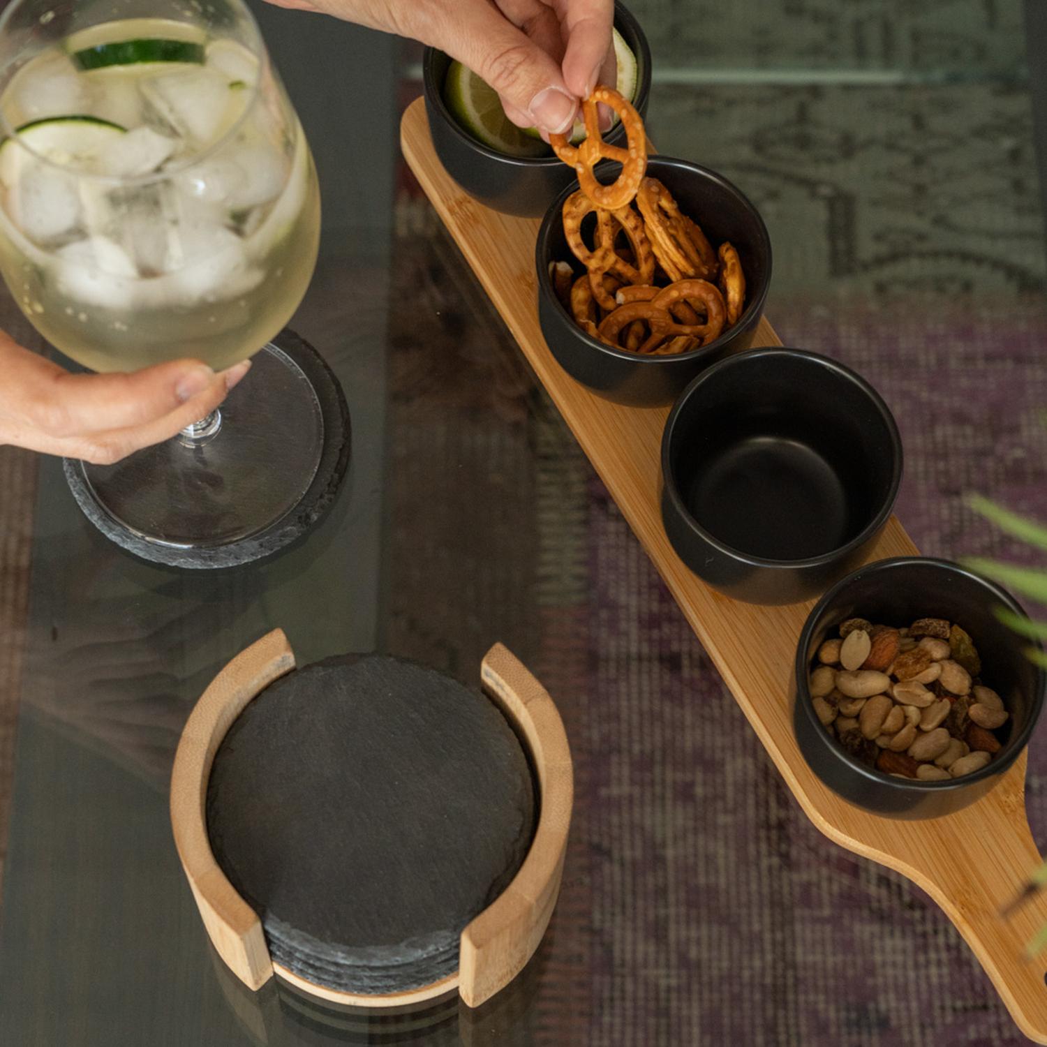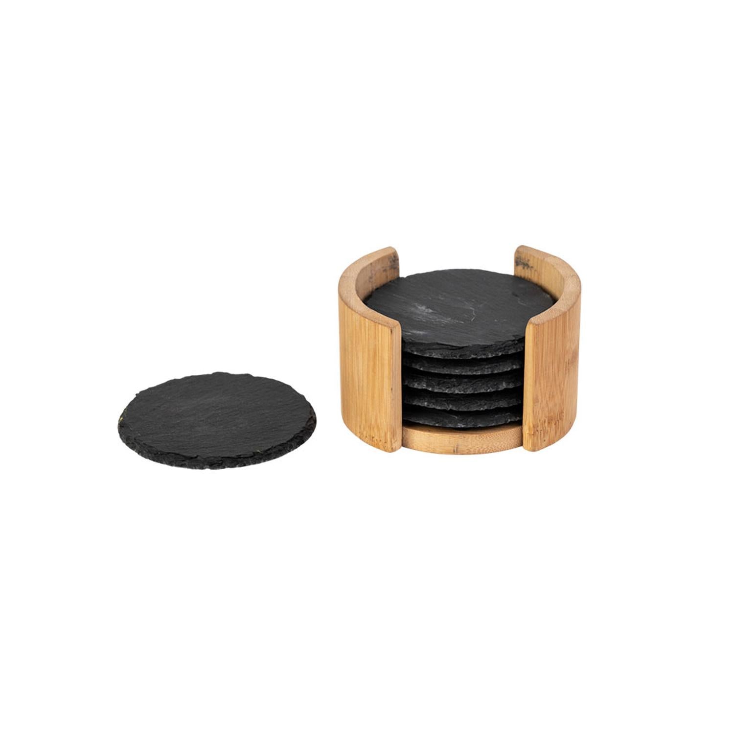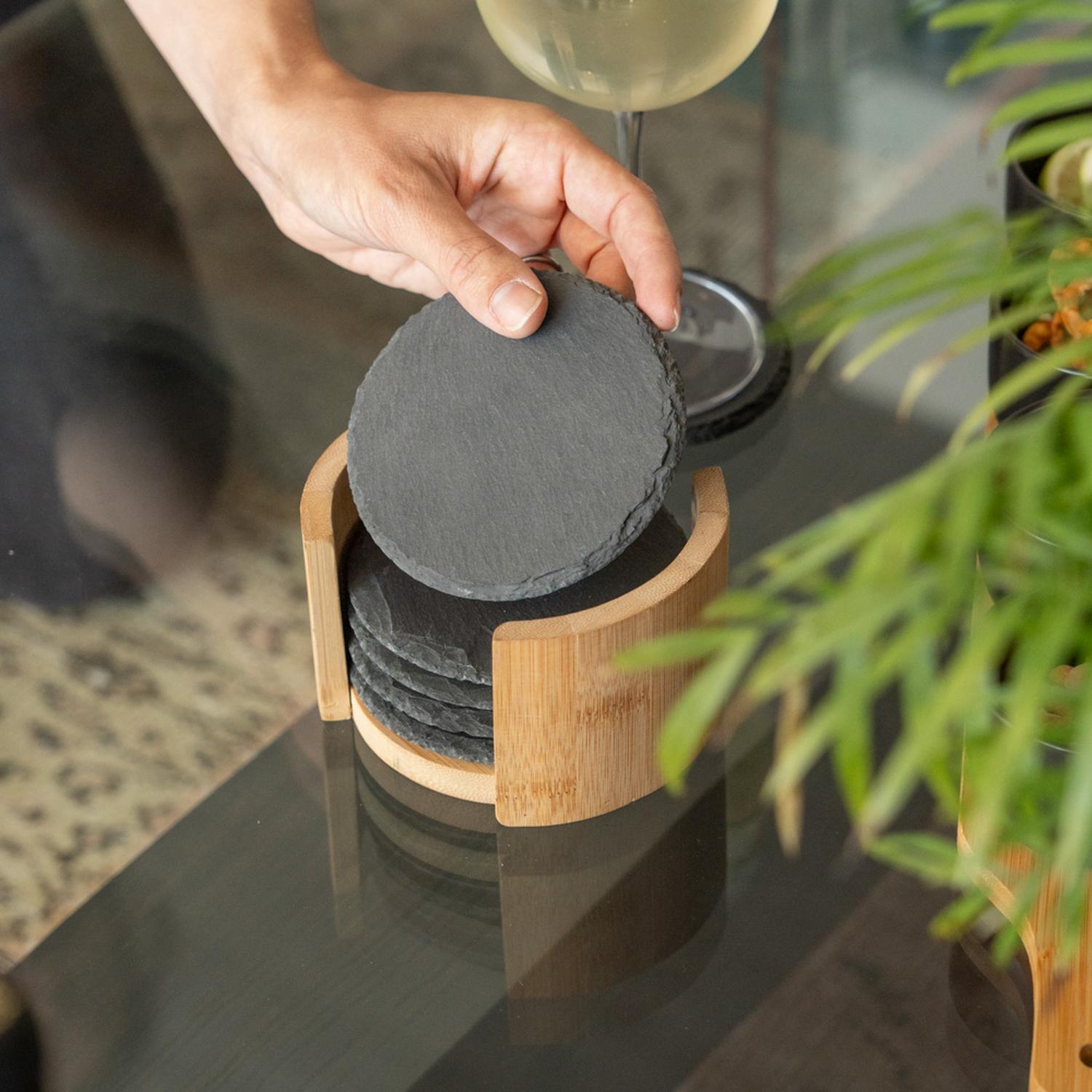 Set de 6 Posavasos de Piedra Soporte de Bambú 10 cm Secret De Gourmet