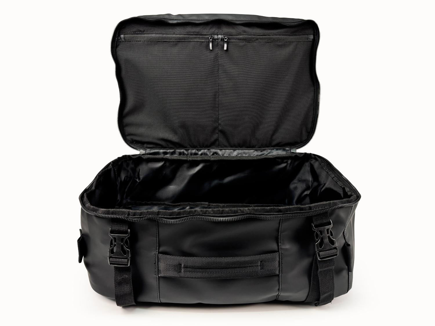 Su cierre se abre completamente. haciendo muy cómodo organizar todas tus cosas en su interior. tal como si se tratara de una maleta y sus huinchas exteriores compresoras. hacen que puedas llevar todo más compacto. Además. cuenta con un bolsillo especial para laptop y un bolsillo exterior de rápido acceso para las cosas que se necesitan llevar a la mano.