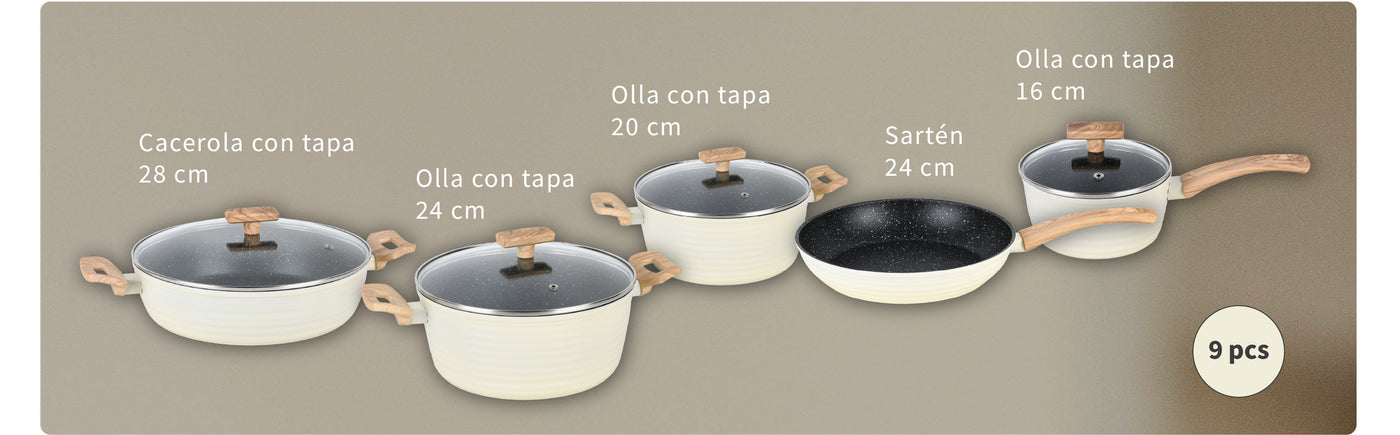 Batería de Cocina Antiadherente Savannah 9 Piezas