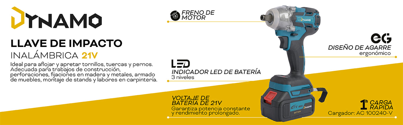 Llave de Impacto Inalámbrica Dynamo 21V - Herramienta versátil y potente para profesionales y aficionados