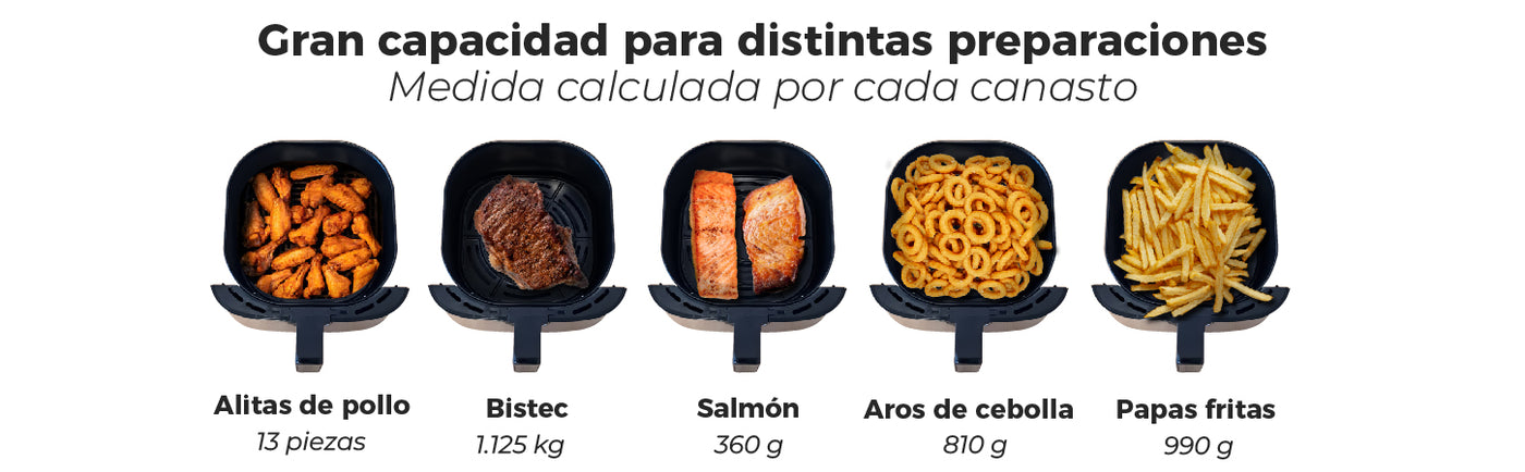 Con la freidora de aire Kitchen-It, podrás disfrutar de una variedad de platos sin el exceso de aceite tradicional. Su avanzada tecnología de circulación de aire caliente te permite cocinar de manera uniforme y sin necesidad de agregar grasas adicionales. Esto hace que tus comidas sean más saludables, reduciendo la ingesta de calorías y grasas saturadas. Además de ser funcional y eficiente, la freidora de aire Kitchen-It también es fácil de usar y limpiar. Su panel de control intuitivo te permite seleccionar el programa y la temperatura deseada con solo presionar un botón. Las canastas y accesorios son removibles y aptos para lavavajillas, lo que facilita la limpieza después de cada uso.