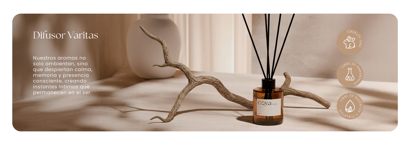 En GOYA, cada fragancia es más que un aroma: es una invitación a habitar el presente. Inspirados en la alta perfumería y guiados por la autenticidad, diseñamos experiencias sensoriales que transforman el aire y elevan el entorno. Nuestros aromas no solo ambientan, sino que despiertan calma, memoria y presencia consciente, creando instantes íntimos que permanecen en el ser.