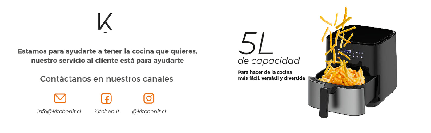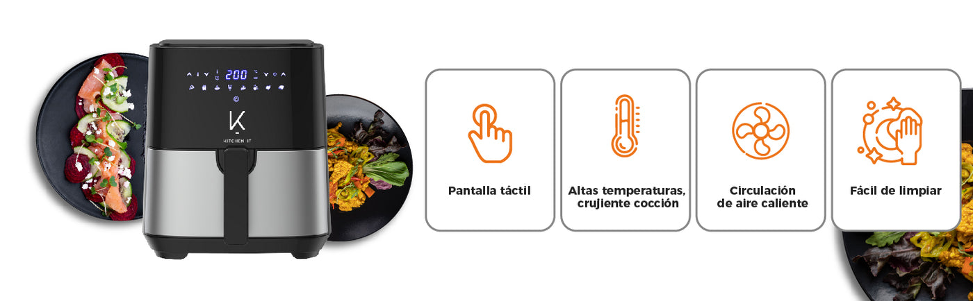 El diseño intuitivo de la freidora Kitchen-It facilita su uso. Las luces indicadoras te mantienen informado sobre el estado de cocción, mientras que los controles ergonómicos te permiten ajustar la temperatura y el tiempo con facilidad. La pantalla digital agrega un toque moderno a la experiencia culinaria.