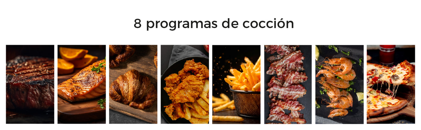La temperatura máxima de 200°C te brinda la versatilidad para cocinar una amplia gama de recetas. Desde dorar hasta hornear, esta freidora puede manejarlo todo. Los 8 programas de cocción preestablecidos simplifican aún más el proceso, ajustando automáticamente el tiempo y la temperatura para garantizar resultados óptimos en cada preparación.