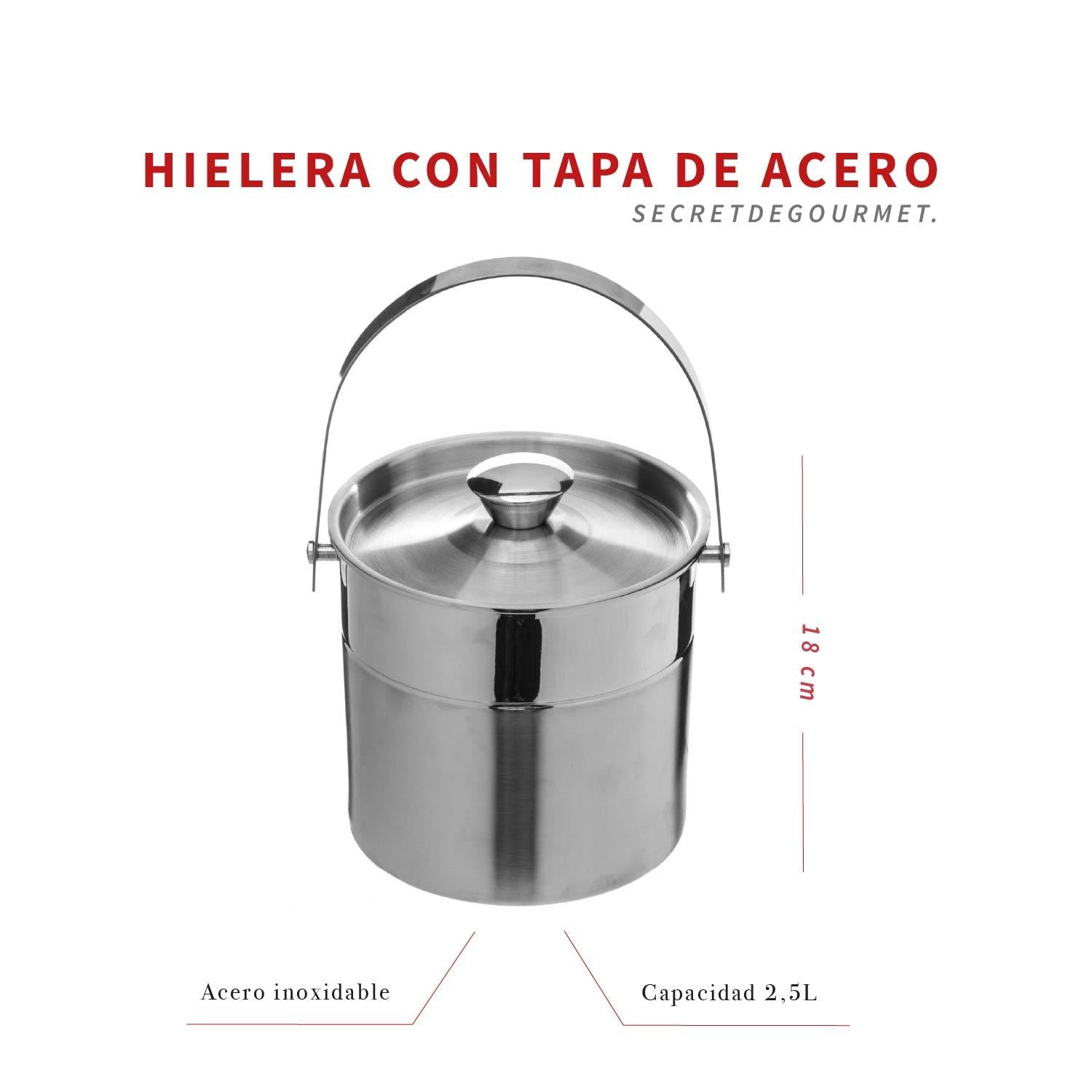 Dale un toque de elegancia a tus celebraciones y asegúrate de que tus bebidas estén siempre a la temperatura perfecta. Con la Hielera de Acero Inoxidable Secret De Gourmet, olvídate del hielo derretido a mitad de la fiesta. Su diseño clásico y su construcción duradera la convierten en el accesorio de cocina indispensable para anfitriones que aprecian la calidad y el buen gusto en su menaje de cocina.