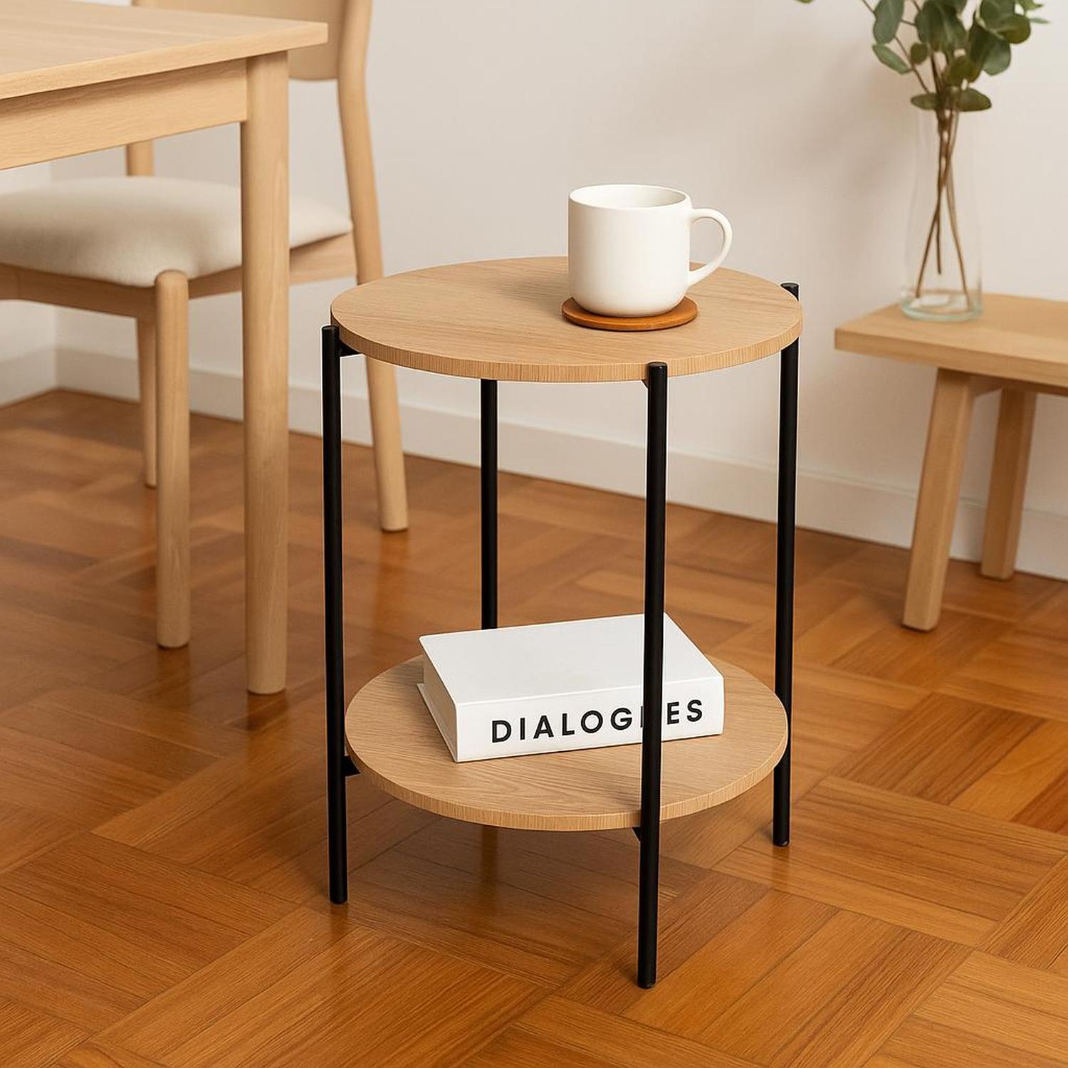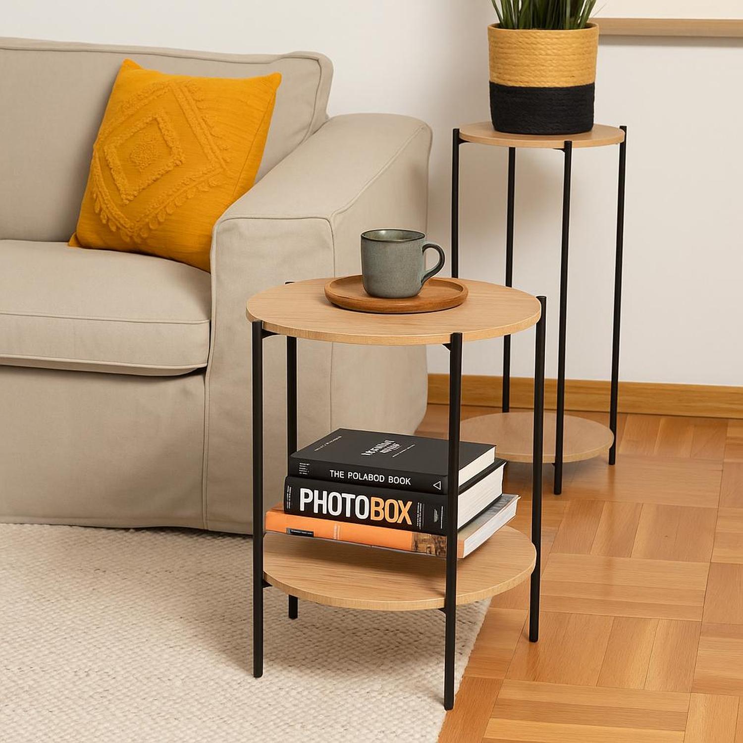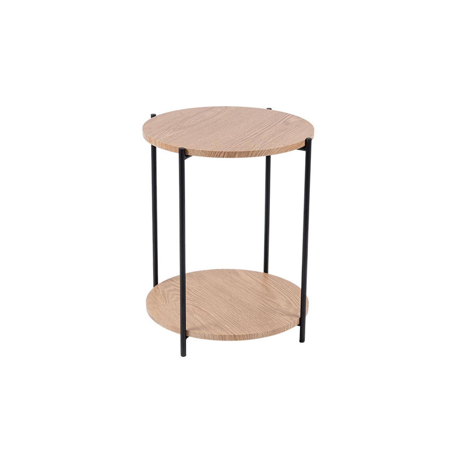 Mesa Auxiliar Redonda con Doble Repisa Metal y MDF Day