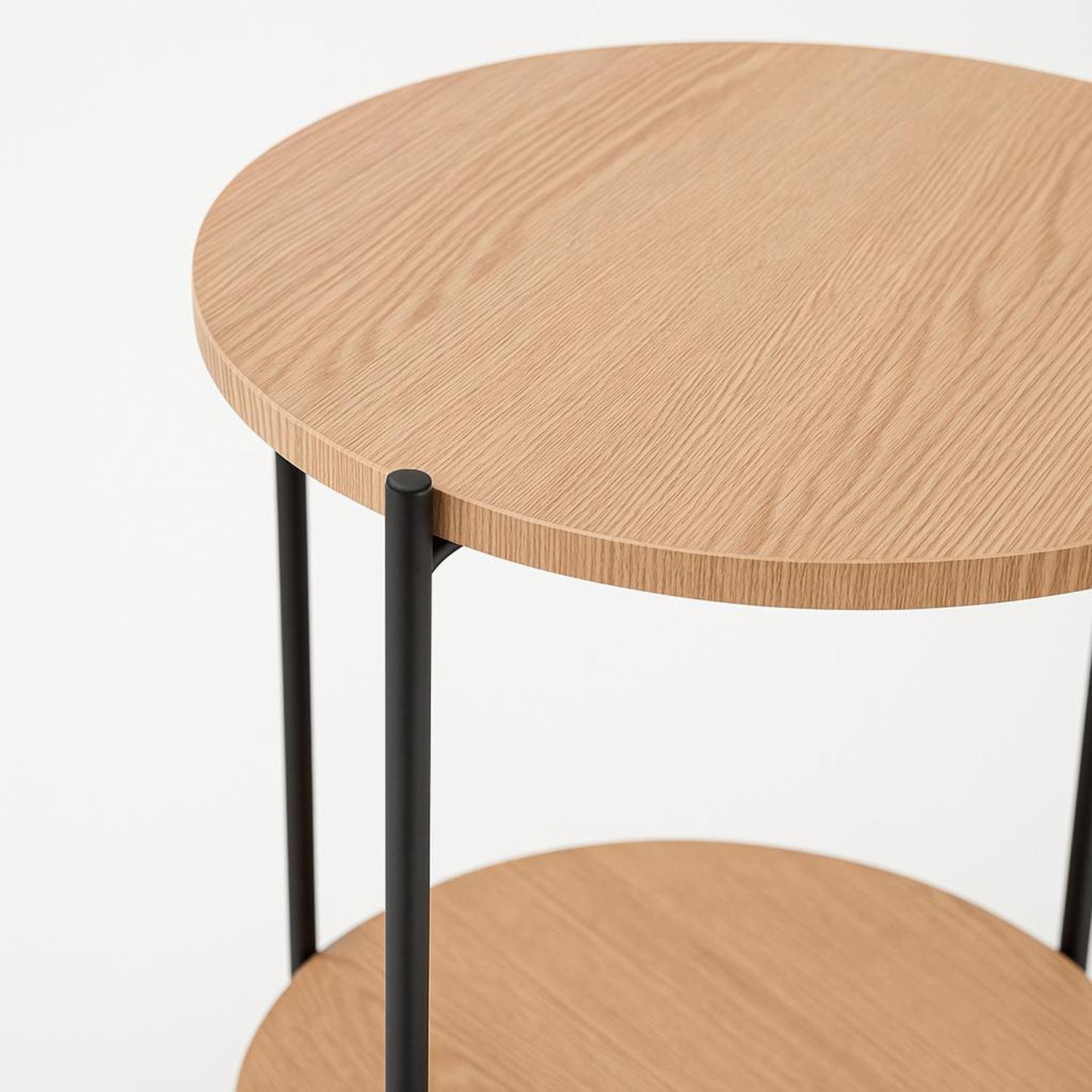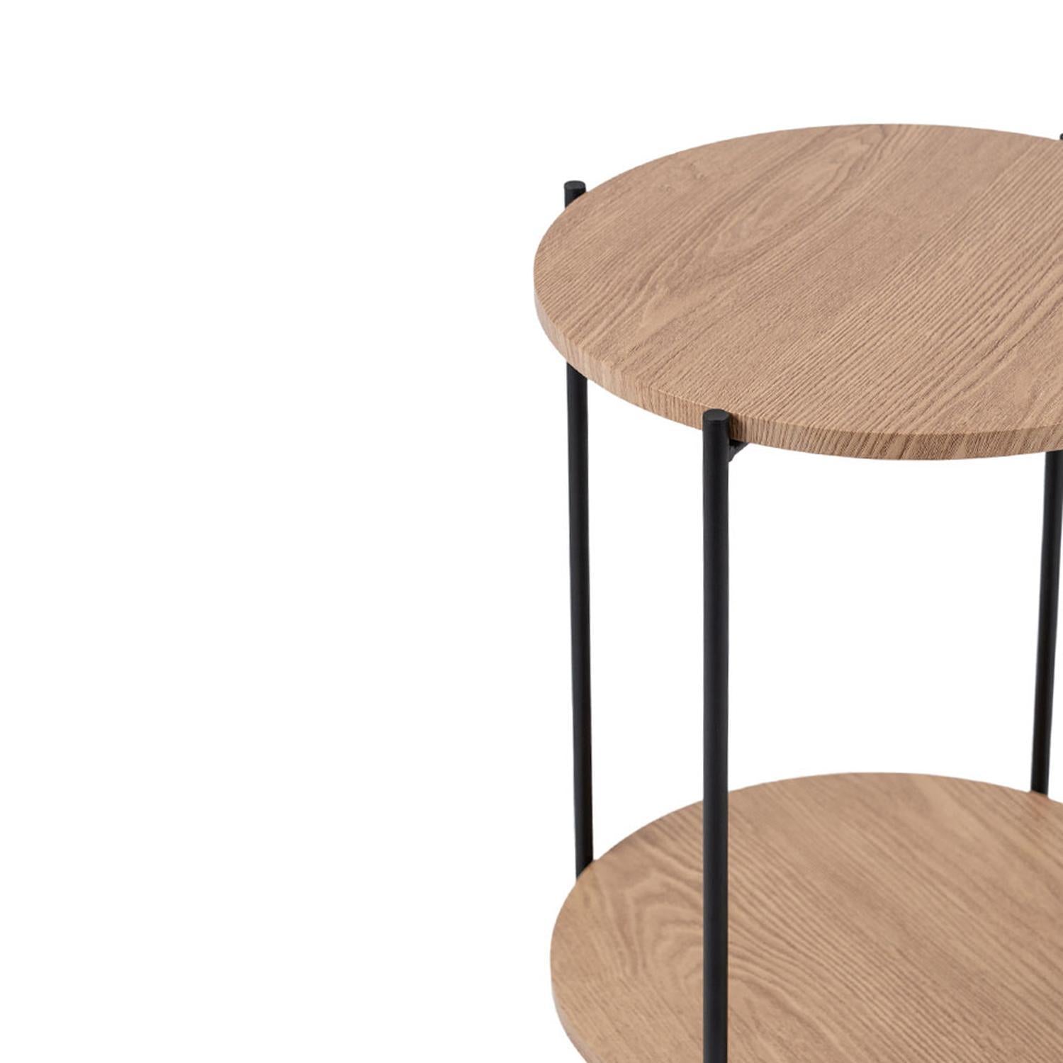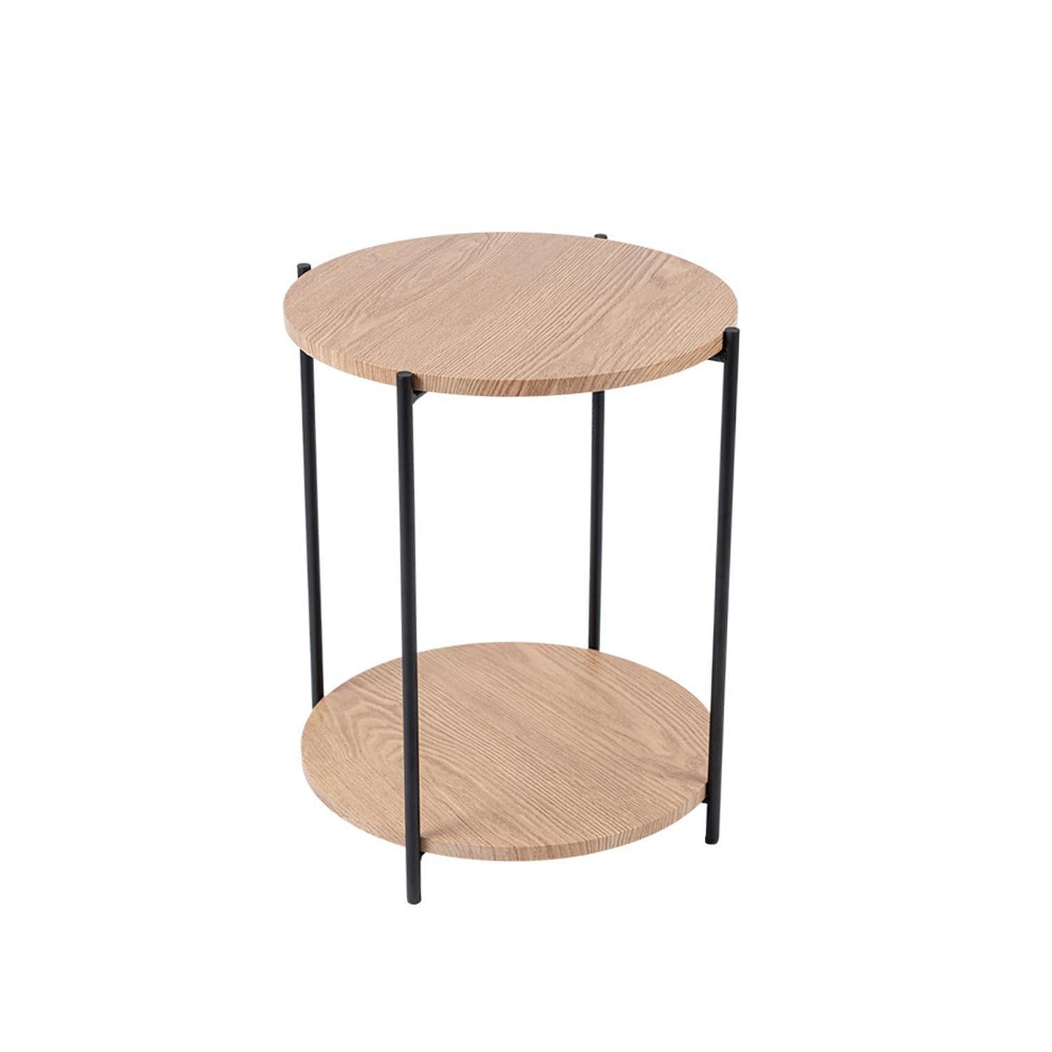 Mesa Auxiliar Redonda con Doble Repisa Metal y MDF Day