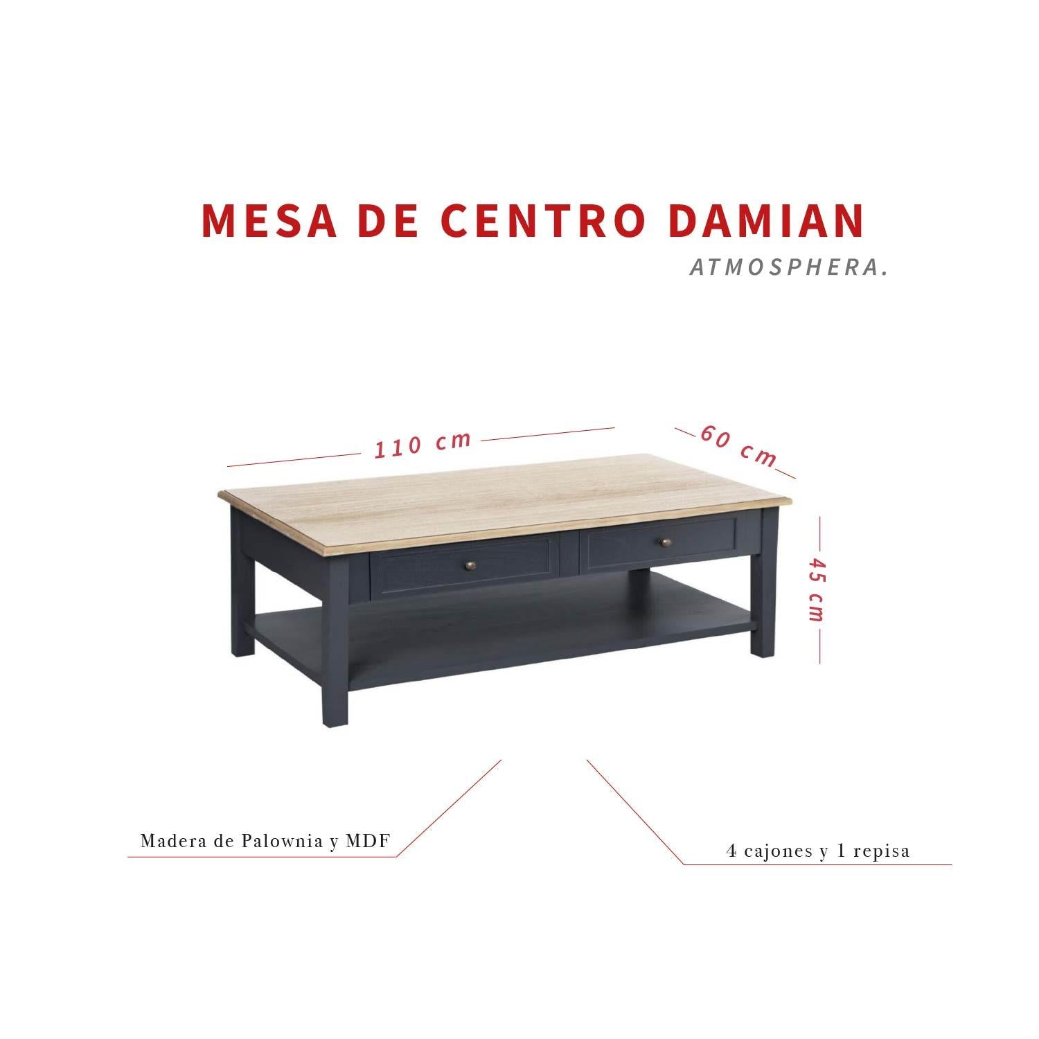 Mesa de Centro Damian con 4 Cajones y Repisa Atmosphera