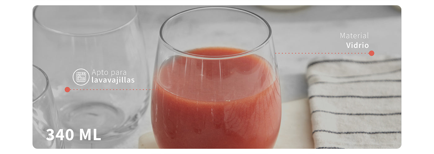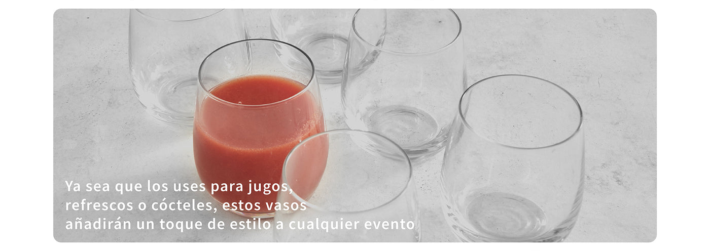 Añade elegancia y funcionalidad a cualquier ocasión con este set de 6 vasos de vidrio de alta calidad. Con una capacidad de 340 ml y un diseño ergonómico redondeado, son ideales para servir jugos, refrescos o cocteles con estilo. Resistentes y aptos para lavavajillas, combinan practicidad y sofisticación en cada evento.