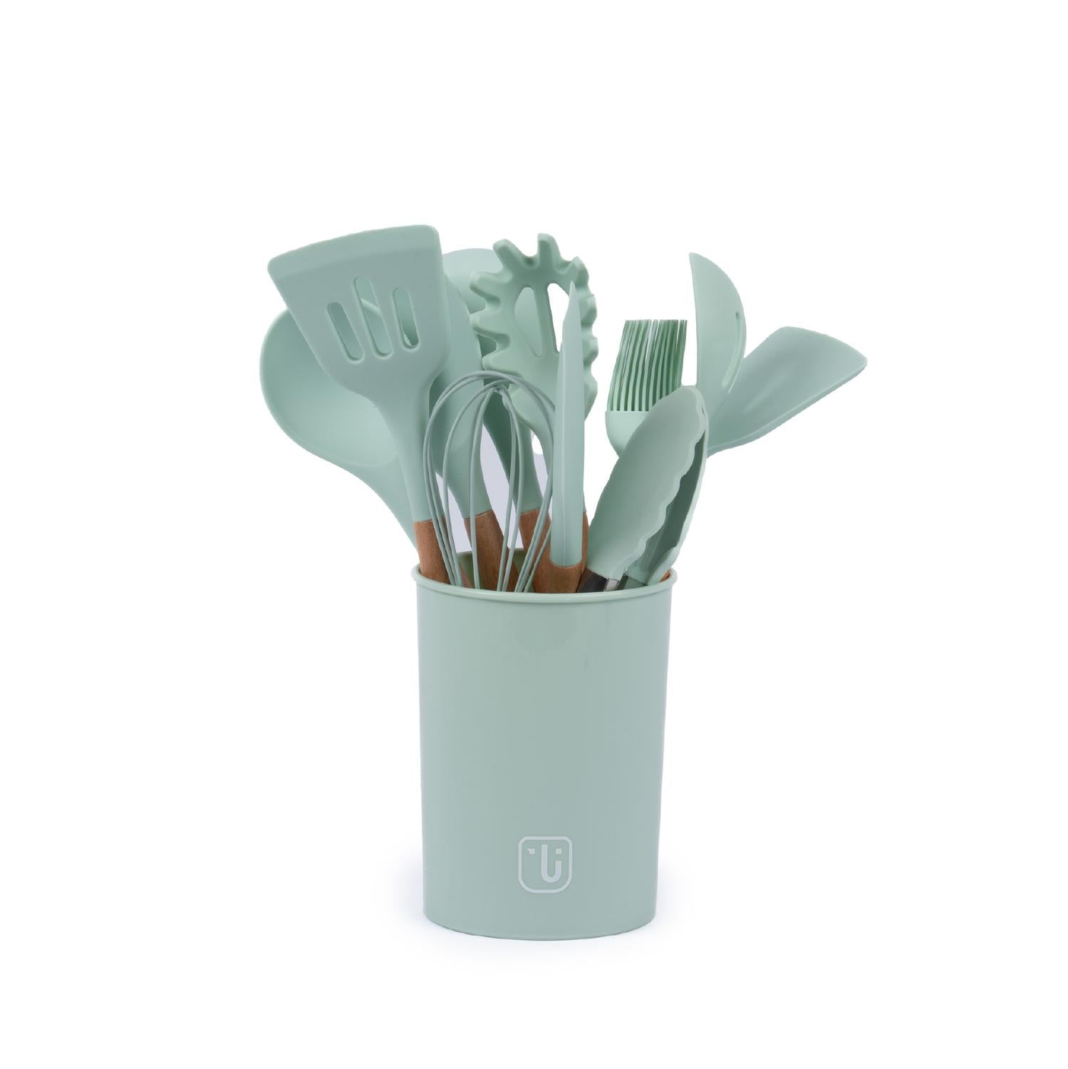 Nuestro Set de Utensilios de Cocina Simplit incluye 12 piezas básicas para equipar de la mejor manera tu cocina y darle vida y onda a tu espacio favorito. Este set viene con un cómodo contenedor para que los guardes. Todos los utensilios cuentan con un mango de madera y silicona fácil de limpiar que no absorbe olores ni sabores de los alimentos. Resisten temperaturas hasta los 230ºC.