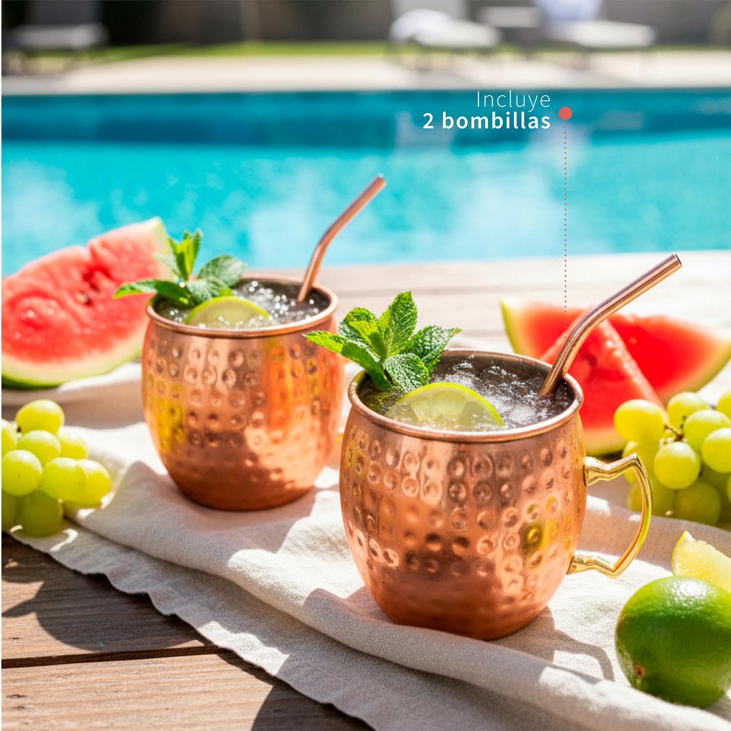 Set 4 Vasos Moscow Mule Mug Cobre + Bombillas Simplit