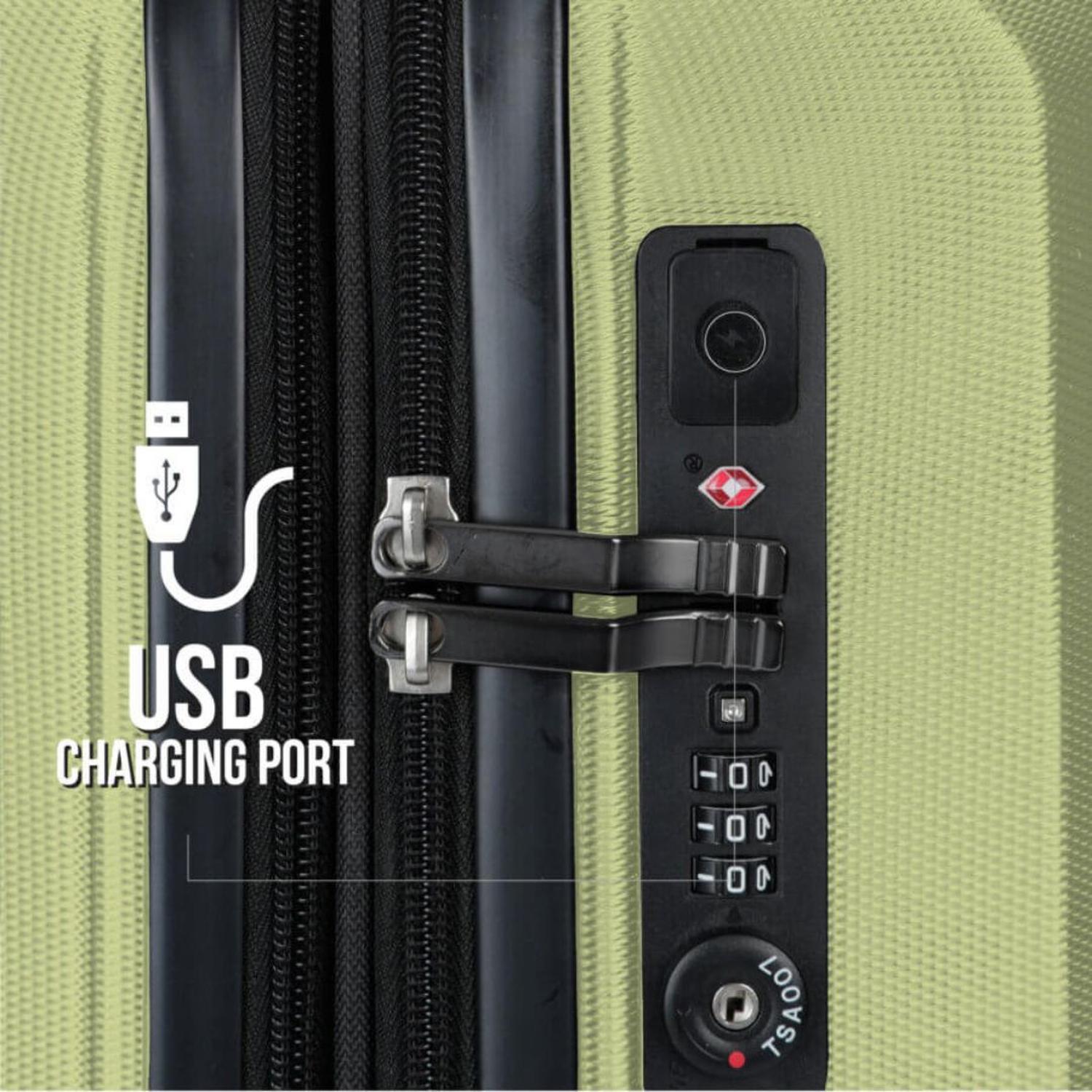 Con Puerto USB en su maleta de cabina, podrás cargar con estilo tus dispositivos móviles mientras esperas por tu vuelo. Son maletas livianas y ambos tamaños se pueden expandir, lo que ofrece un 20% de capacidad adicional cuando lo necesites. Con cierre YKK y el candado integrado Safe Skies TSA, puedes viajar más seguro y con las ruedas dobles de 360° podrás moverte sin problemas.