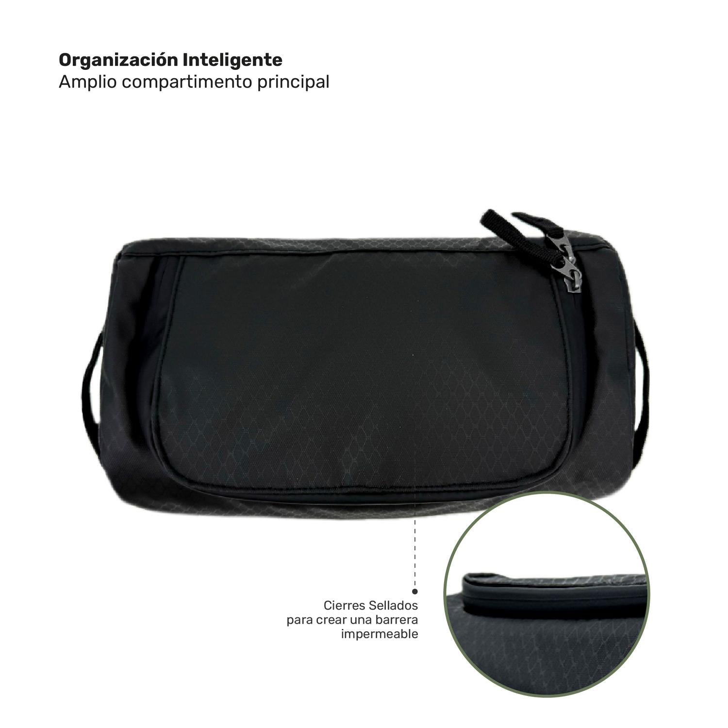 Su principal ventaja es la protección total: el robusto tejido 900D PU y sus cierres sellados crean una barrera impermeable que protege tus artículos de la humedad y, a la vez, tu equipaje de cualquier derrame accidental. Al llegar, su funcionalidad brilla: despliega su gancho integrado y cuélgalo para tener acceso instantáneo y organizado a todo, convirtiendo cualquier rincón en tu baño personal. Su diseño espacioso te permite llevar todo lo que necesitas, de forma ordenada y siempre lista para la acción.