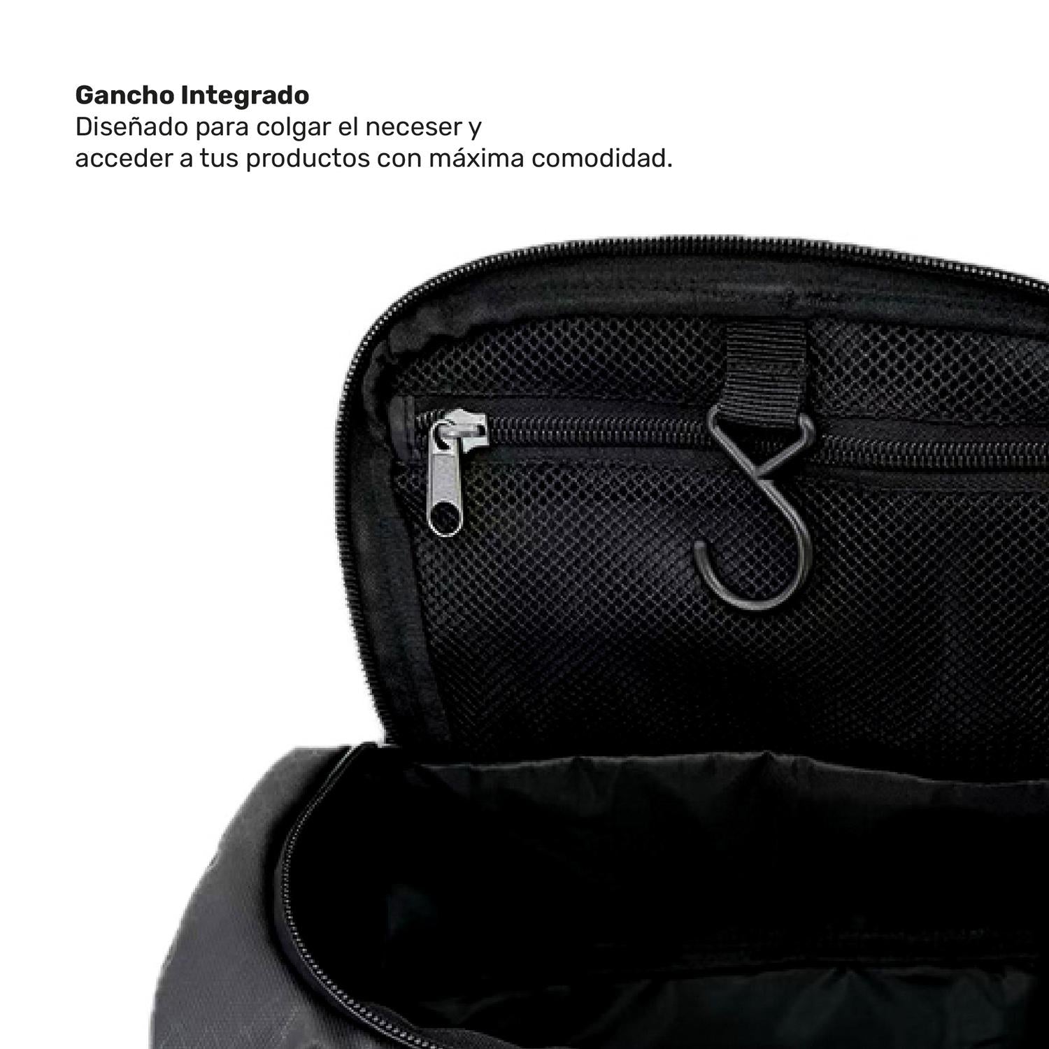 • Gancho Integrado: Diseñado para colgar el neceser y acceder a tus productos con máxima comodidad.