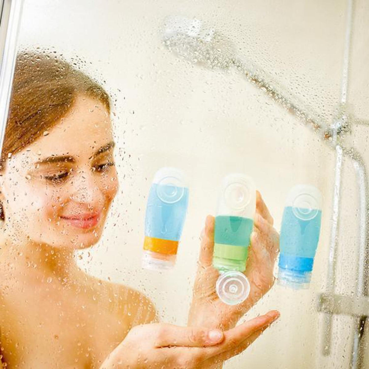 con un chupón en la parte posterior para fijarlas al vidrio de la ducha, espejos o azulejos!