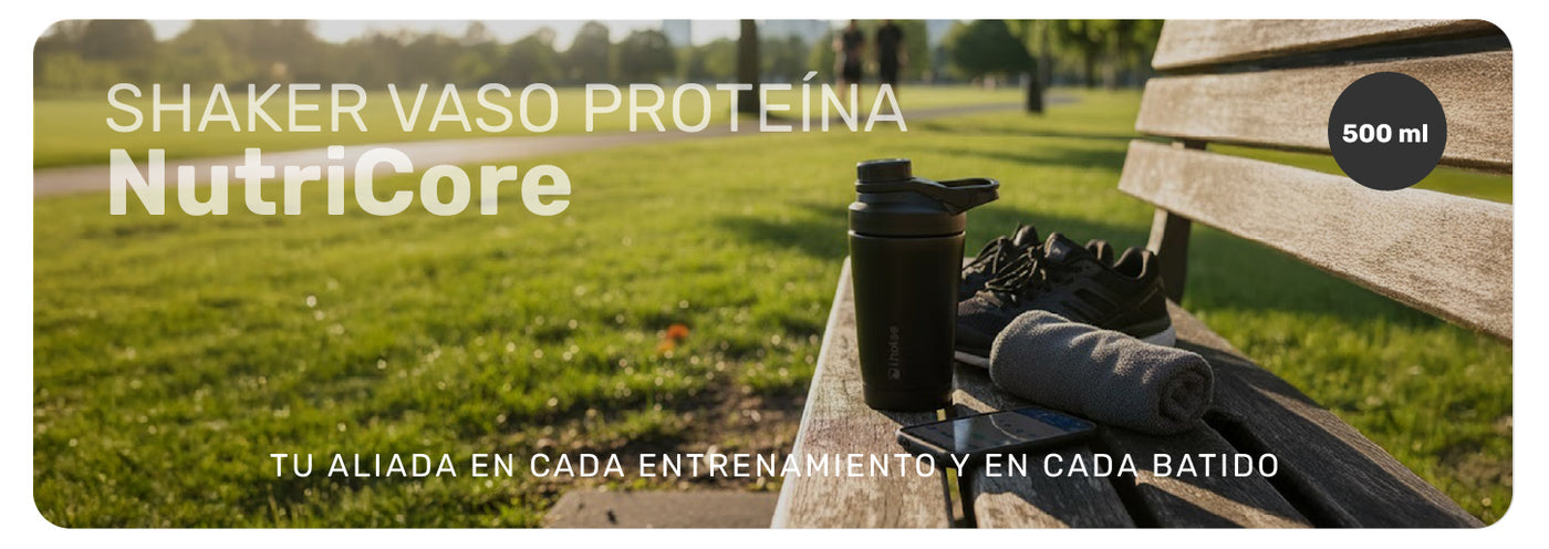 Actualiza tu equipamiento de gimnasio con el shaker que tu esfuerzo merece. El NutriCore no es un vaso de plástico más; es una pieza esencial de tu ritual de fitness. Su tapa a rosca anti-fugas y su sistema de mezclado superior te dan la confianza para batir en cualquier lugar. Siente la calidad del acero inoxidable y disfruta de la recuperación que te mereces, sin grumos ni accidentes.