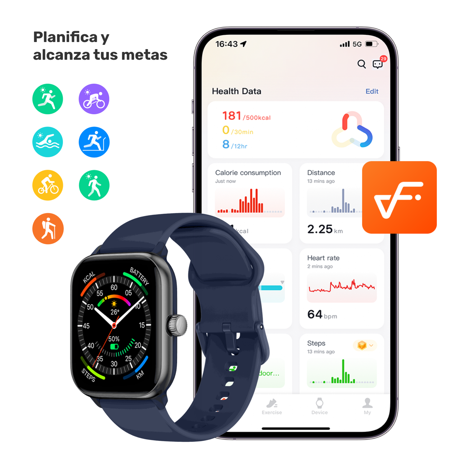 • Compatibilidad con iOS y Android, sincronización con Strava, Google Health, Apple Health, entre otros.