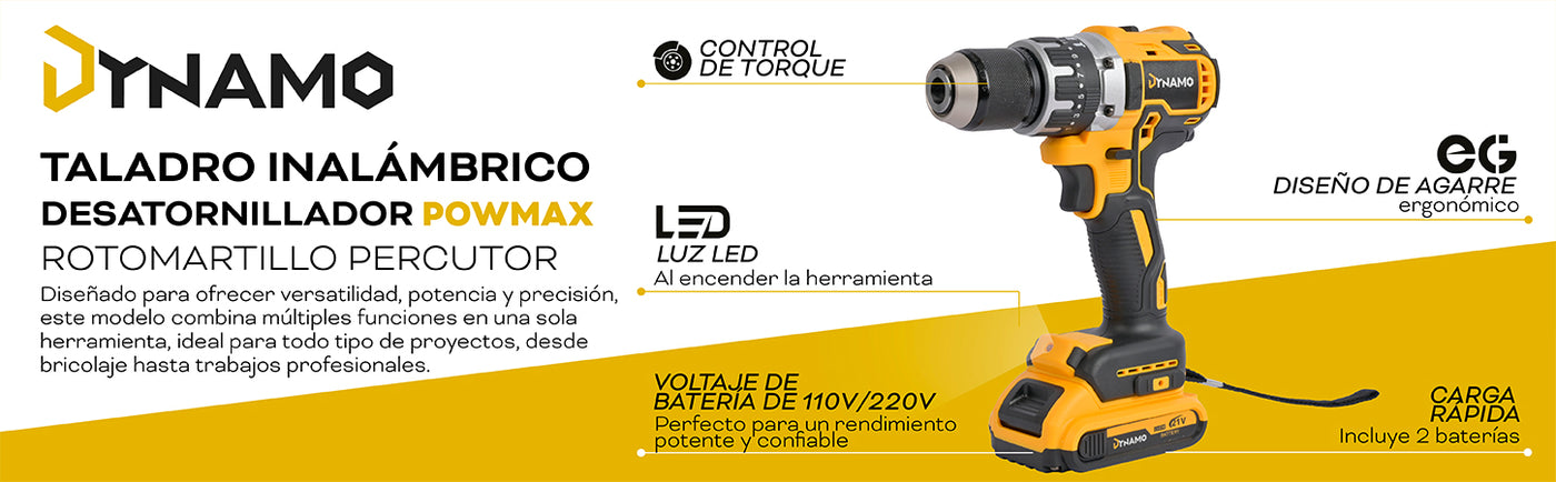 Taladro Inalámbrico Desatornillador Dynamo Rotomartillo Percutor – POWMAX