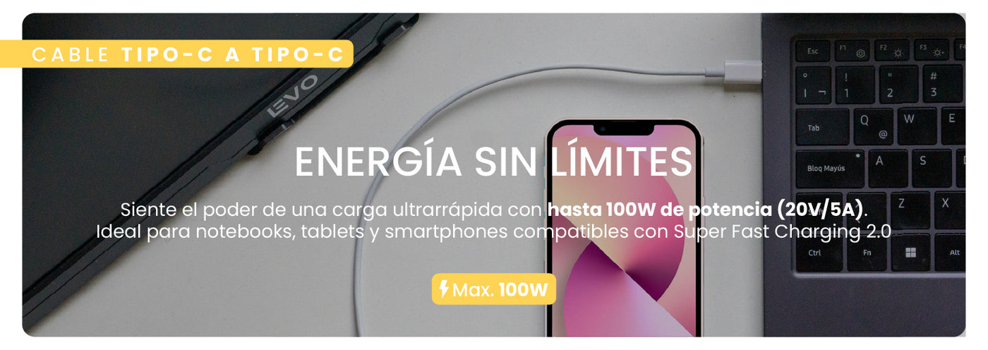 ¿Imaginas poder cargar tu laptop, tablet o smartphone en minutos y no en horas? Con el Cable USB-C LEVO de 100W y el Cargador de Pared USB-C LEVO de 25W, esa realidad está a un conector de distancia. Este pack fue diseñado para quienes no esperan, para los que siempre van un paso adelante.