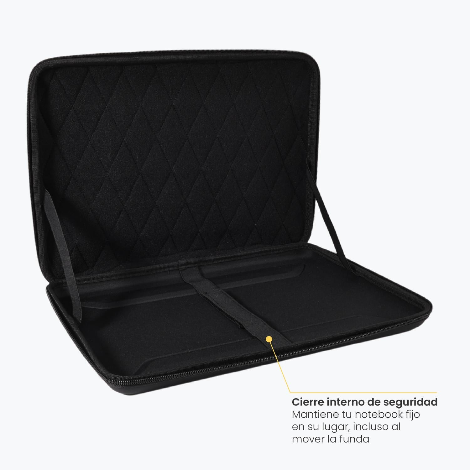 Con su exterior rígido y esquinas reforzadas, resguarda tu equipo de golpes y caídas inesperadas, mientras que su interior acolchado mantiene todo a salvo de rayones y roces. Además, su diseño resistente al agua y al polvo protege tu dispositivo en cualquier entorno, dándote la tranquilidad de que estará seguro incluso en los días más exigentes.