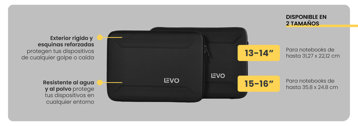 Tu notebook es más que un dispositivo, es el centro de tus ideas, tu compañero de estudio, trabajo y creatividad. La Funda HardShell para Notebook Levo ha sido diseñada para acompañarte en cada desafío, brindando una protección superior sin sacrificar comodidad ni estilo.