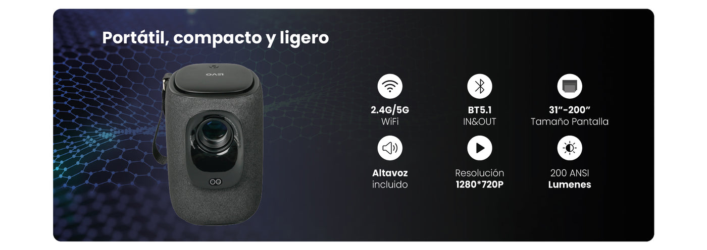 Proyector Portátil Nova 9000lm + Telón 60" Eléctrico LEVO