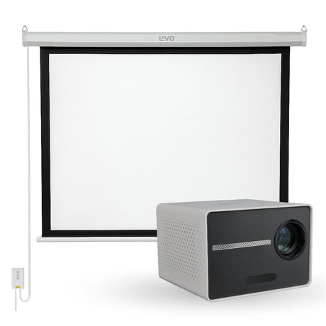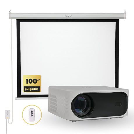Proyector Portátil Halo 9000lm + Telón Electrico 100" LEVO