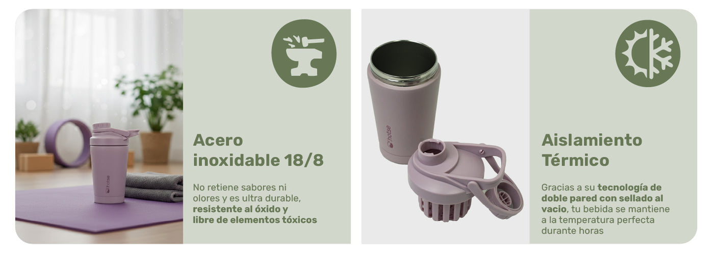 • Rendimiento Térmico: Acero inoxidable de alta calidad que mantiene tus batidos y bebidas frías hasta por 12 horas.