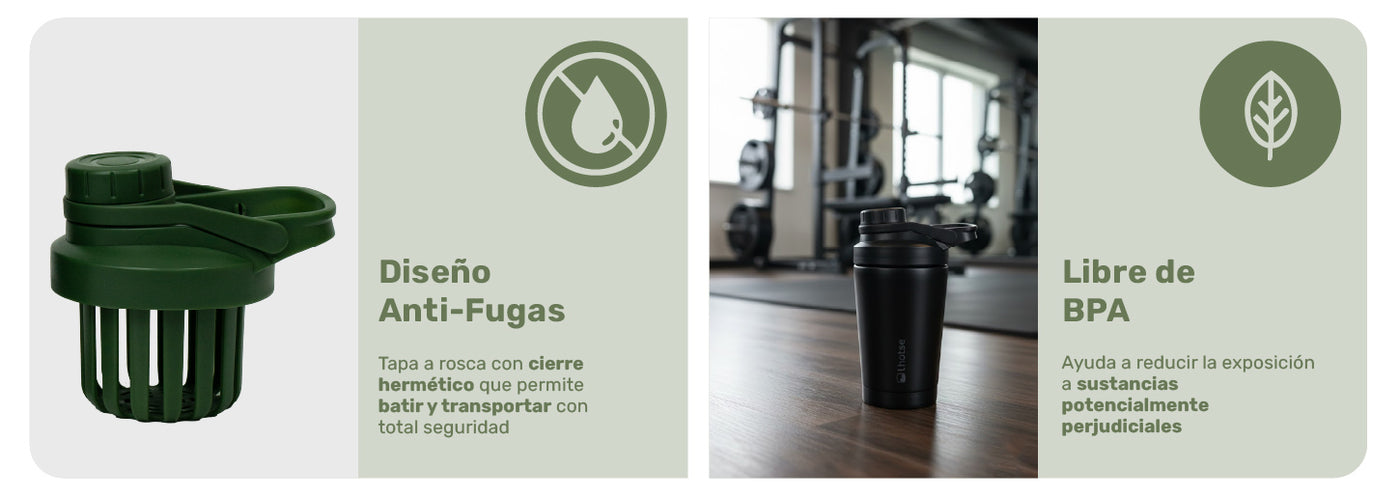 • Diseño Anti-Fugas: Tapa a rosca con cierre hermético que permite batir y transportar con total seguridad.