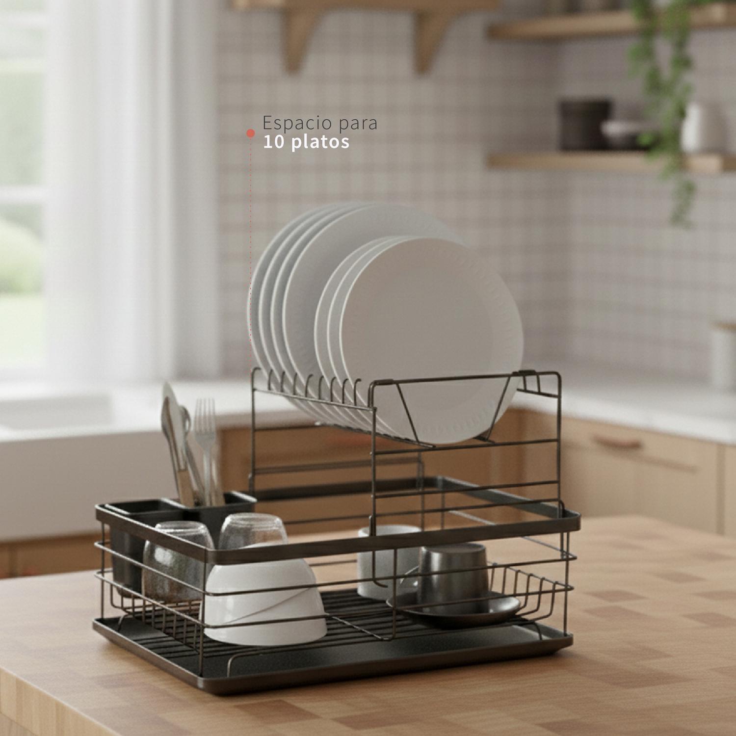 Secaplatos Escurridor 2 Niveles Acero Inox Negro Simplit