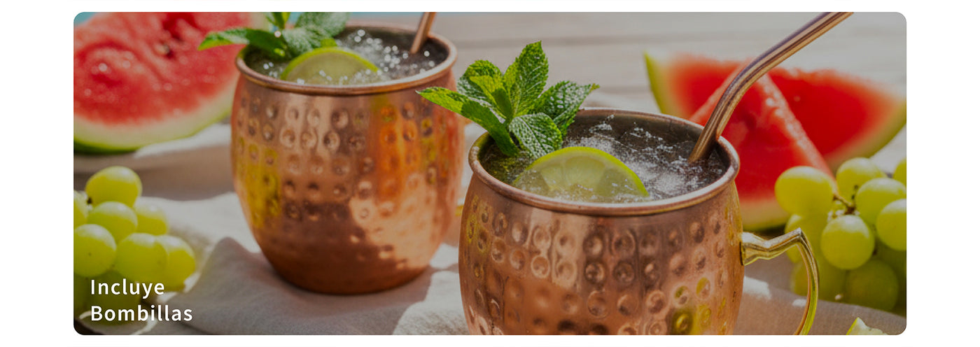 Set 2 Vasos Moscow Mule Mug Cobre + Bombillas Simplit
