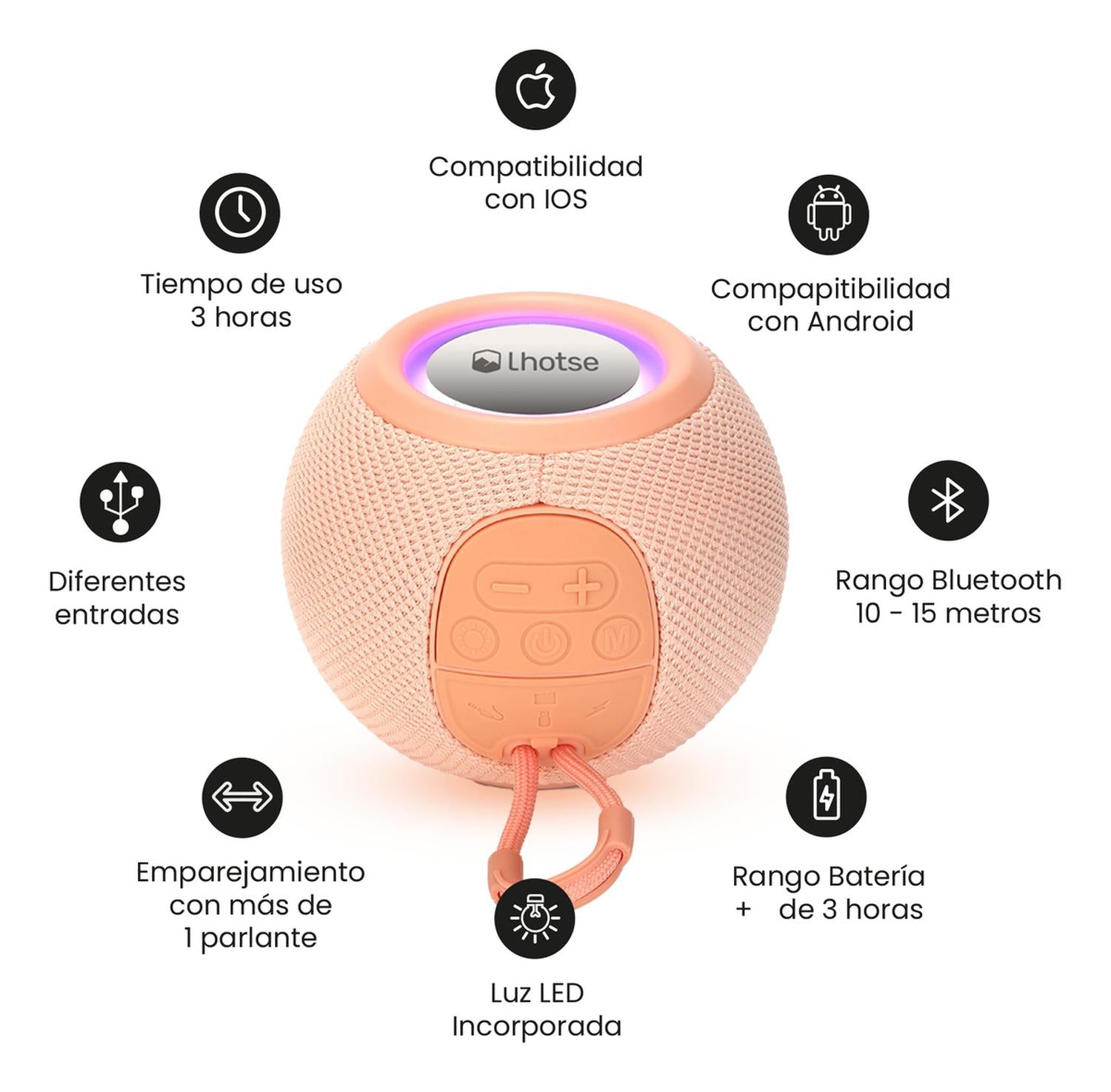Este parlante portátil cuenta con un altavoz de 5W y un rango de frecuencia de 120Hz-20Hz para proporcionar un sonido claro y potente. Aunque no cuenta con cancelación de ruido, su diseño compacto y portátil lo convierten en la elección perfecta para llevarlo a cualquier lugar. Además, su luz LED integrada y su variedad de colores disponibles lo hacen un complemento ideal para tus tardes de música.