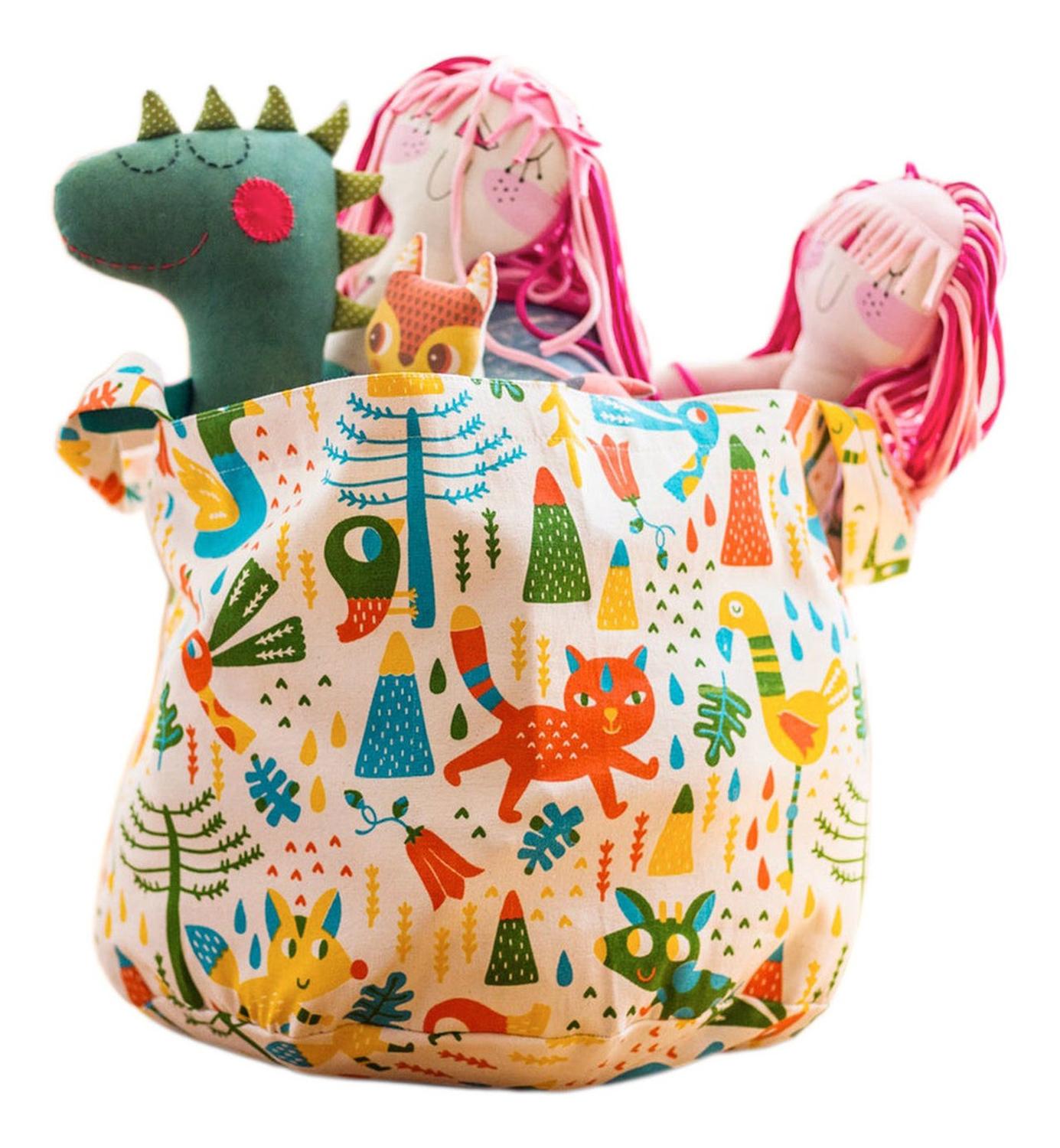 serigrafía 100% algodón / 40 cm diámetro x 36 de altura /Bolsa grande para ordenar y jugar.