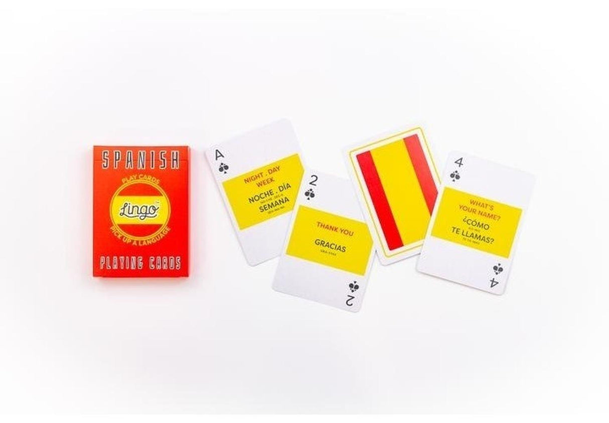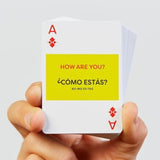 Esta baraja incluye 54 traducciones al español esenciales para los viajeros que desean sumergirse en la cultura que están explorando, desde saludos y presentaciones cotidianas hasta salir a comer, moverse o encontrar un lugar para quedarse. Las frases prácticas van acompañadas de una pronunciación fácil de aprender.