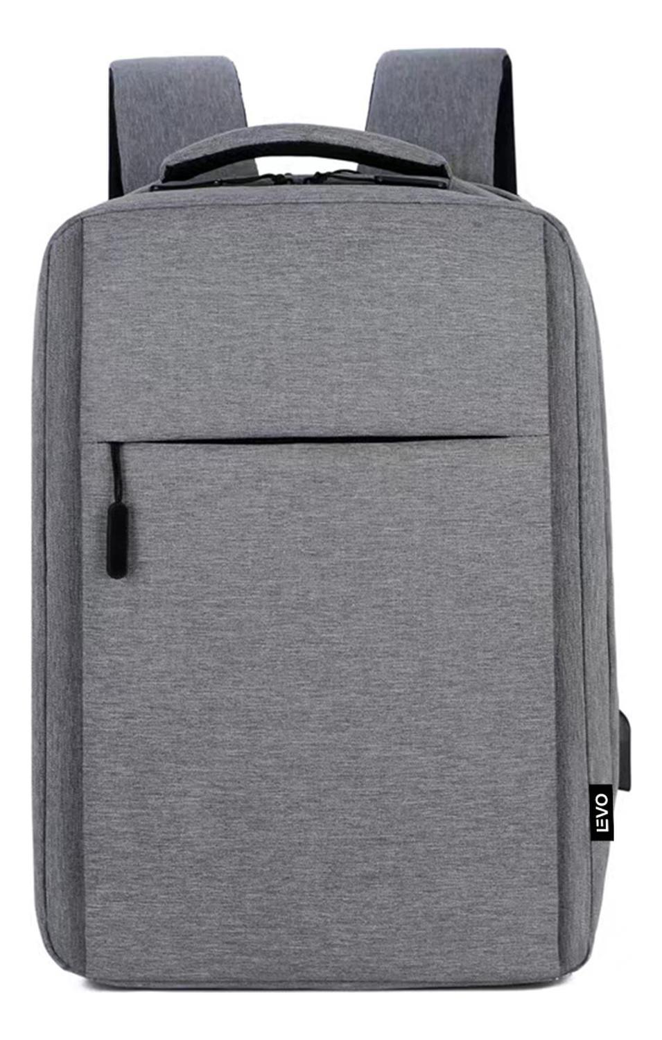 Mochila para Notebook con Puerto USB 15" Levo, perfecta para ir al trabajo o para la universidad. Incluye compartimiento para tu computador de hasta 15,6". Tiene 1 bolsillo exterior con sistema antirrobo y compartimientos al interior para tus accesorios. Sus correas son ajustables y acolchadas para mayor comodidad. ¿Lo mejor? Incluye puerto USB para conectar al interior una batería externa y poder cargar tu teléfono o lo que quieras.