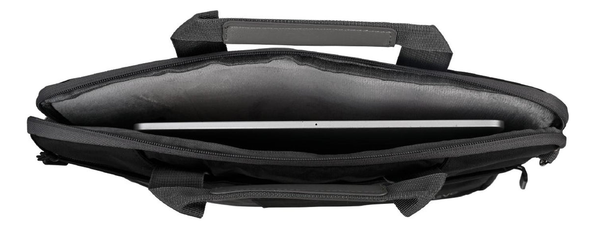 La capacidad de 4 litros de esta funda maletín brinda suficiente espacio para tus pertenencias esenciales, sin abrumarte con un tamaño excesivo. Además, su diseño interior permite acomodar notebooks de hasta 15,6 pulgadas, lo que la convierte en una opción versátil para una amplia gama de dispositivos.